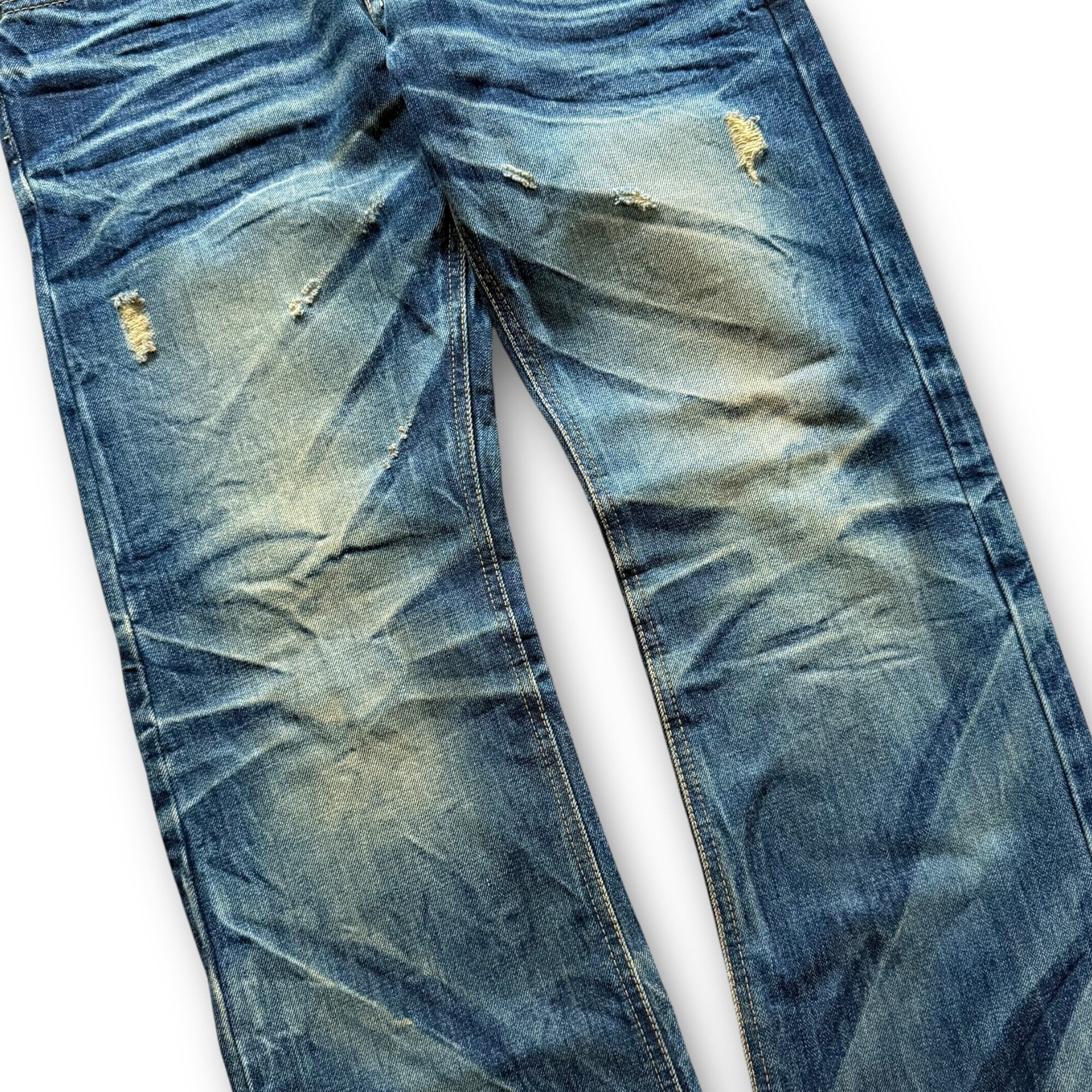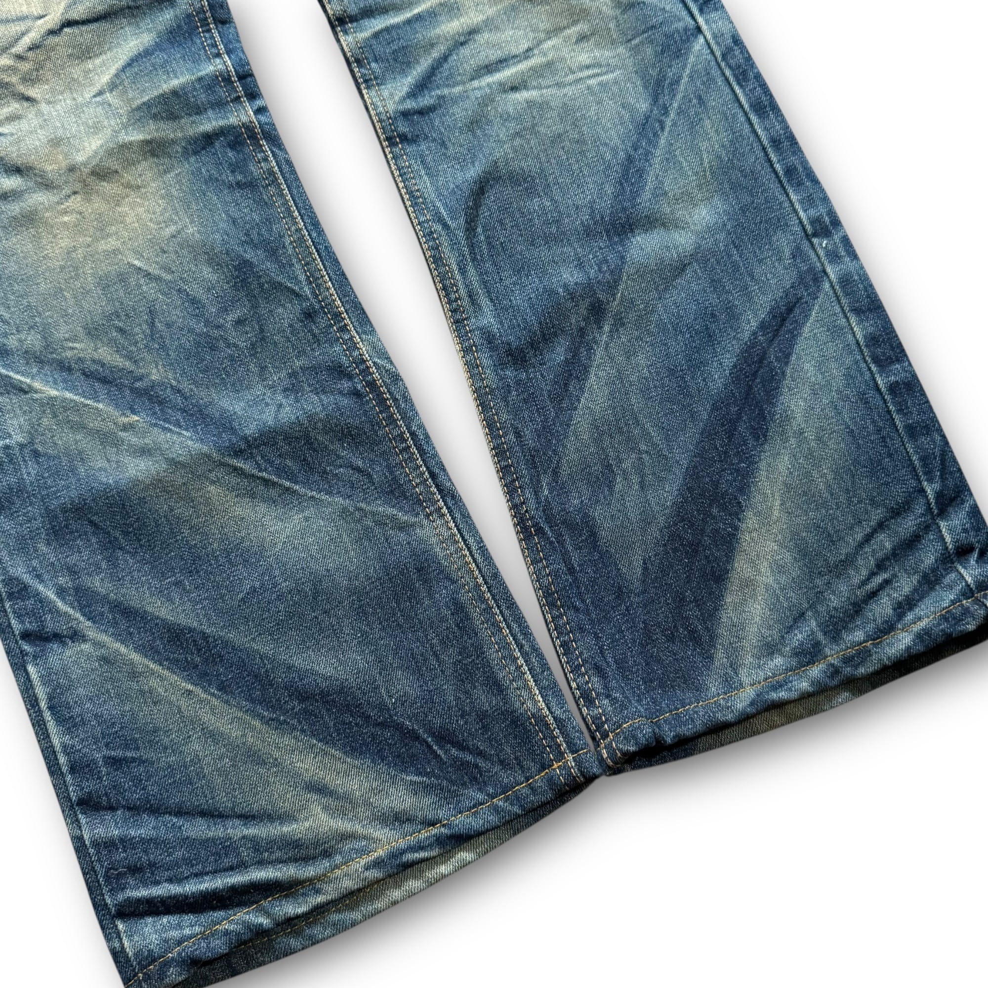 インディゴに土っぽい色落ちの無骨なニュアンスの