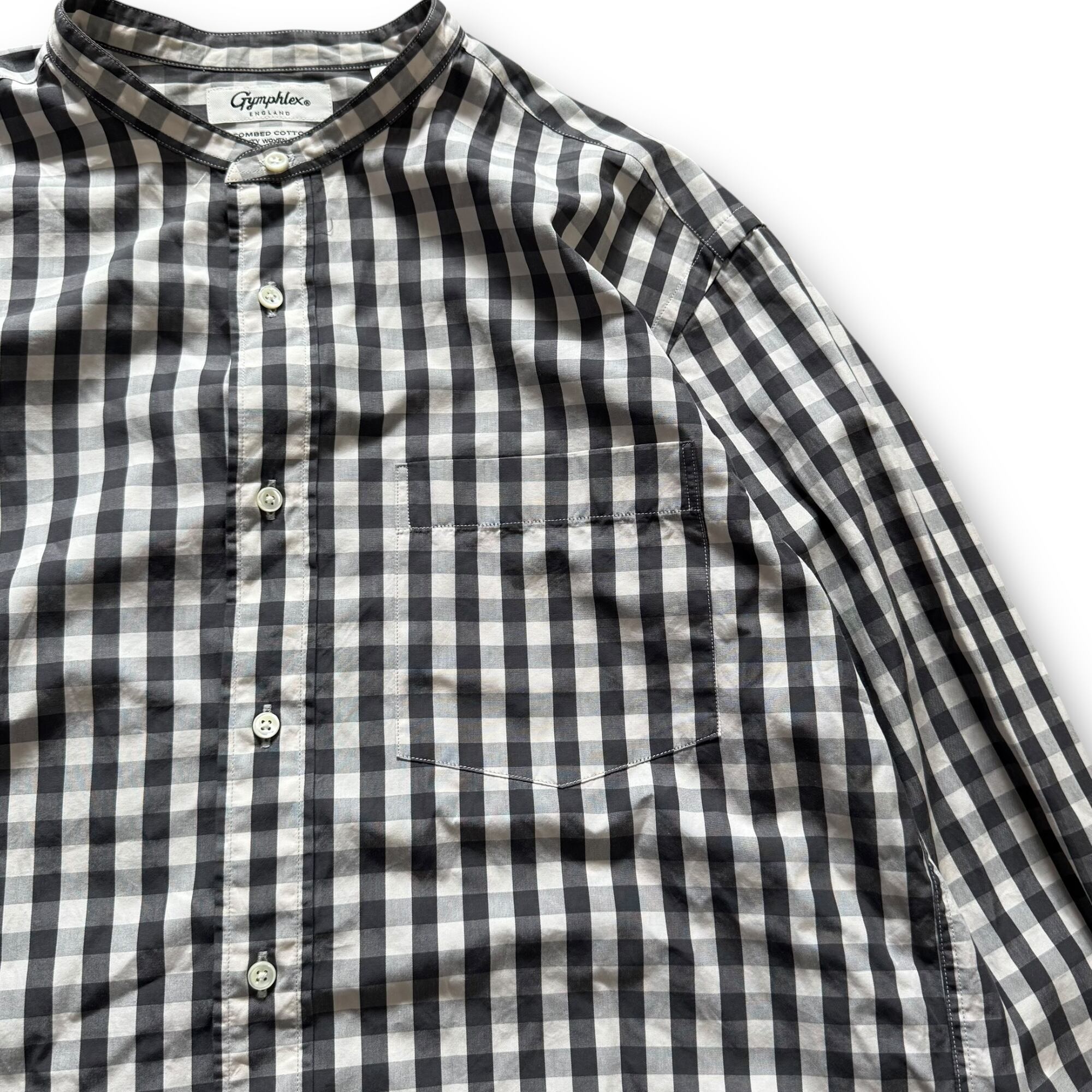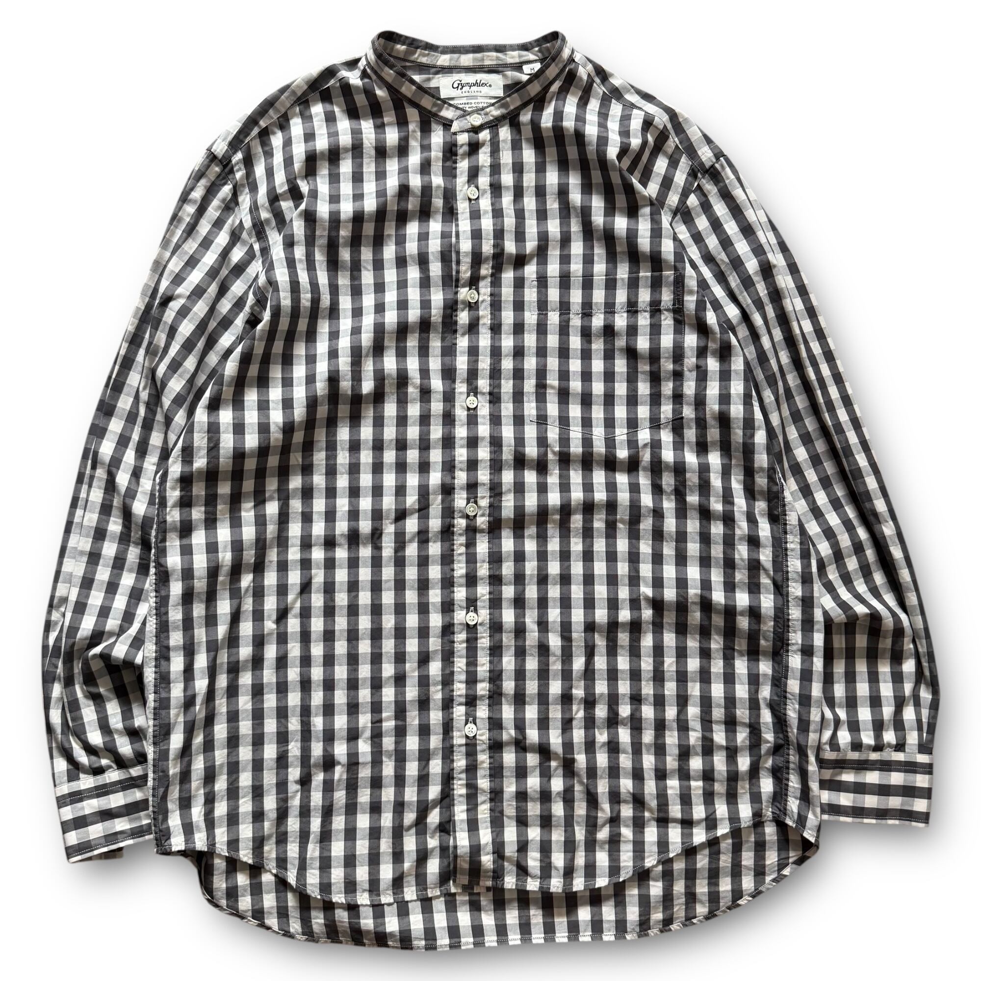 "GYMPHLEX" gingham check no collar shirt / "ジムフレックス" ギンガムチェックノーカラーシャツ