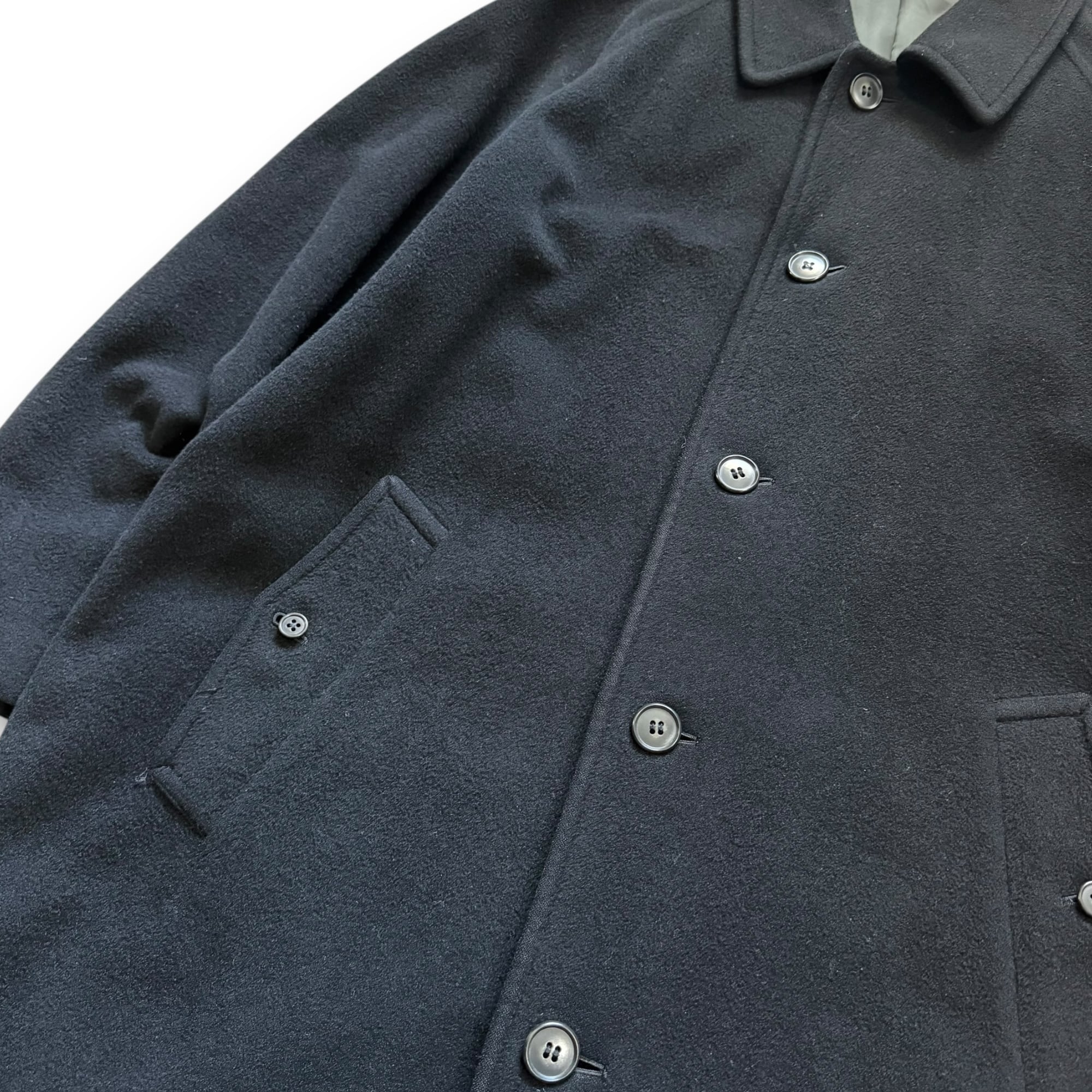 black angora wool balmacaan long coat / ブラックアンゴラウールバルマカーンコート