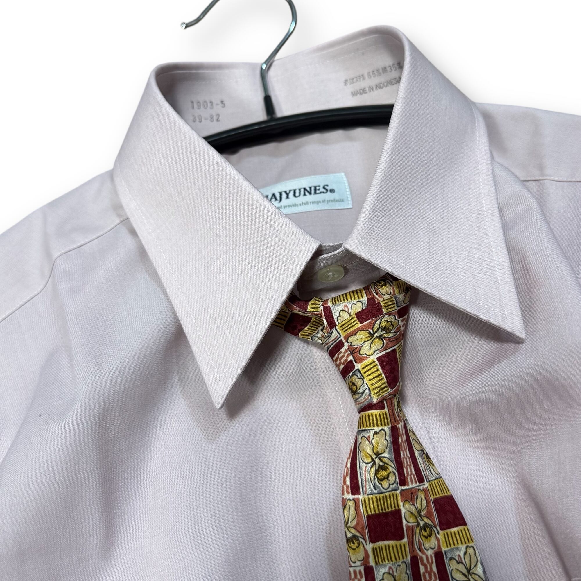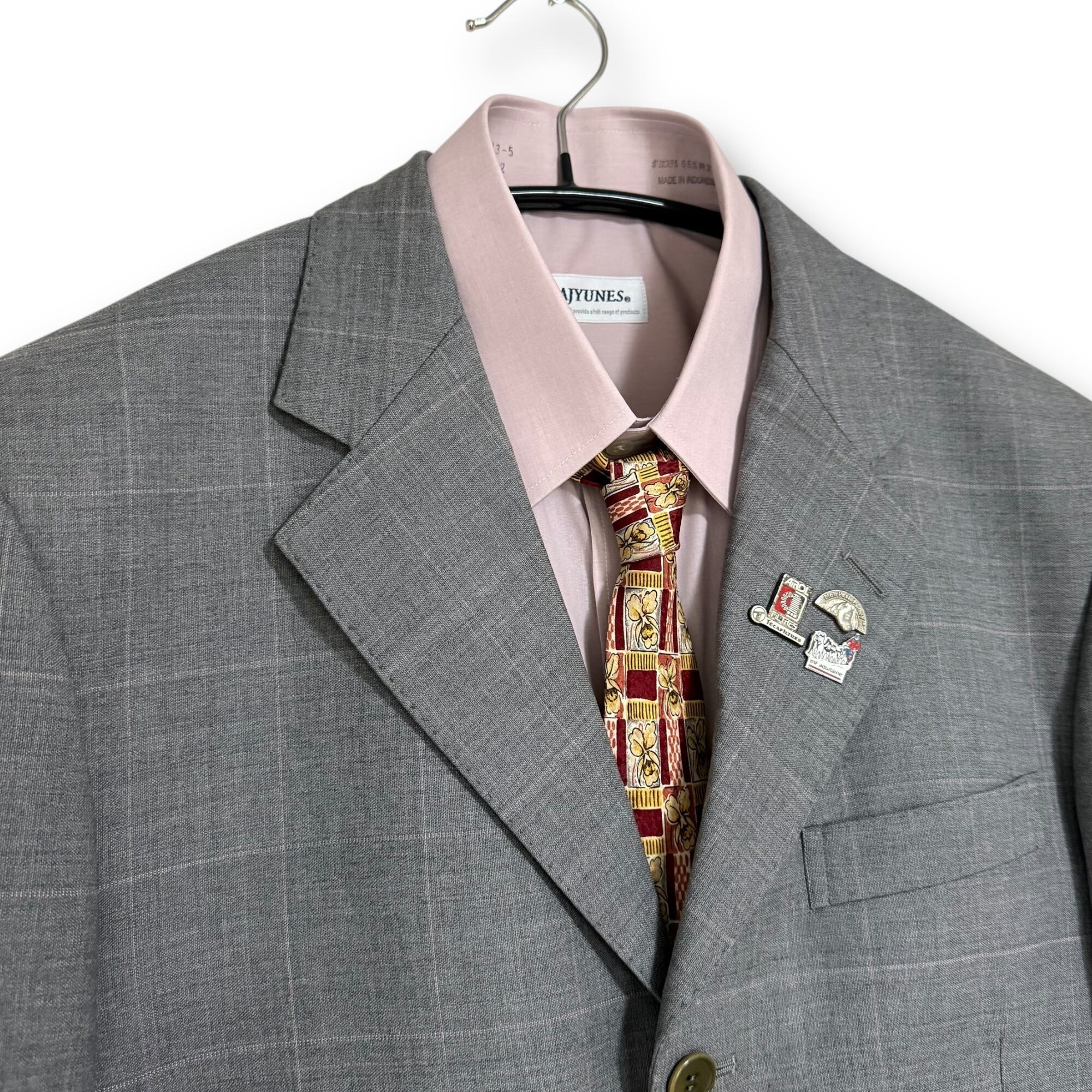 grey graph check set-up & pink color shirt & tie & vintage pins / グレーグラフチェックセットアップ&ピンクカラーシャツ&ネクタイ&ビンテージピンズ