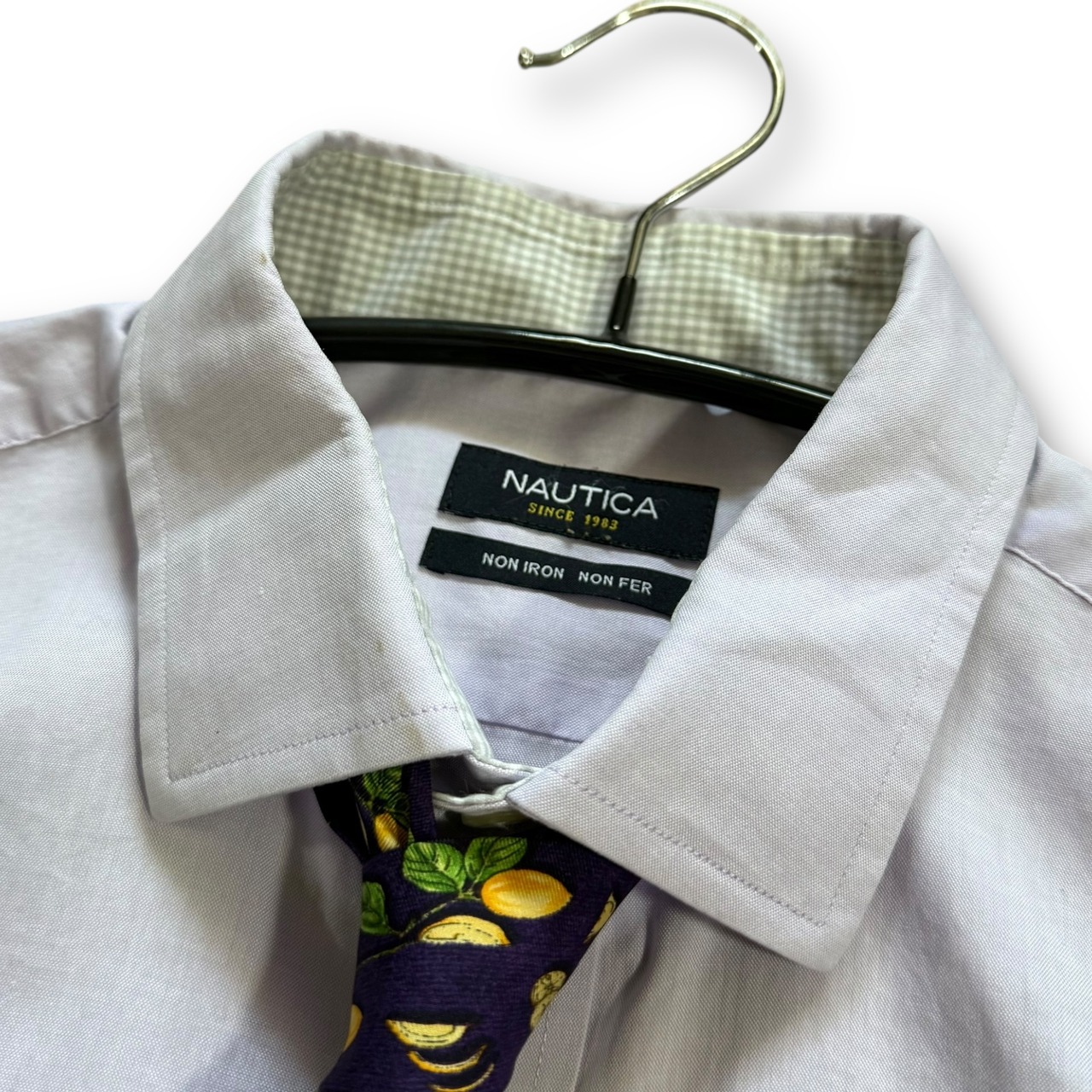 nauticaの淡いパープルカラーのシャツをチョイス。