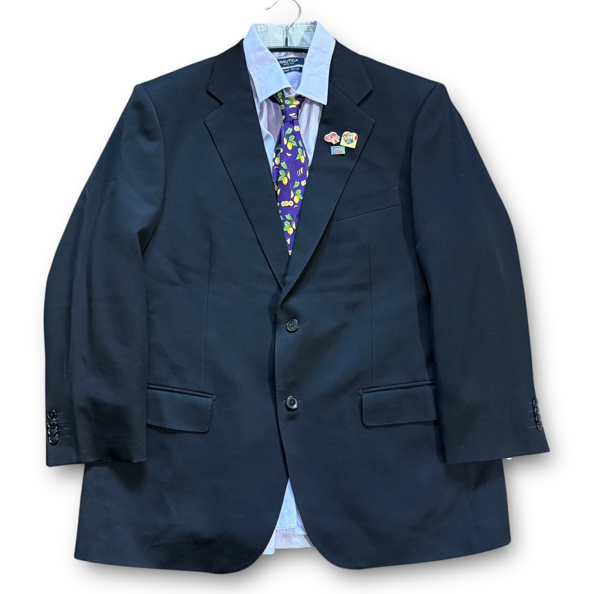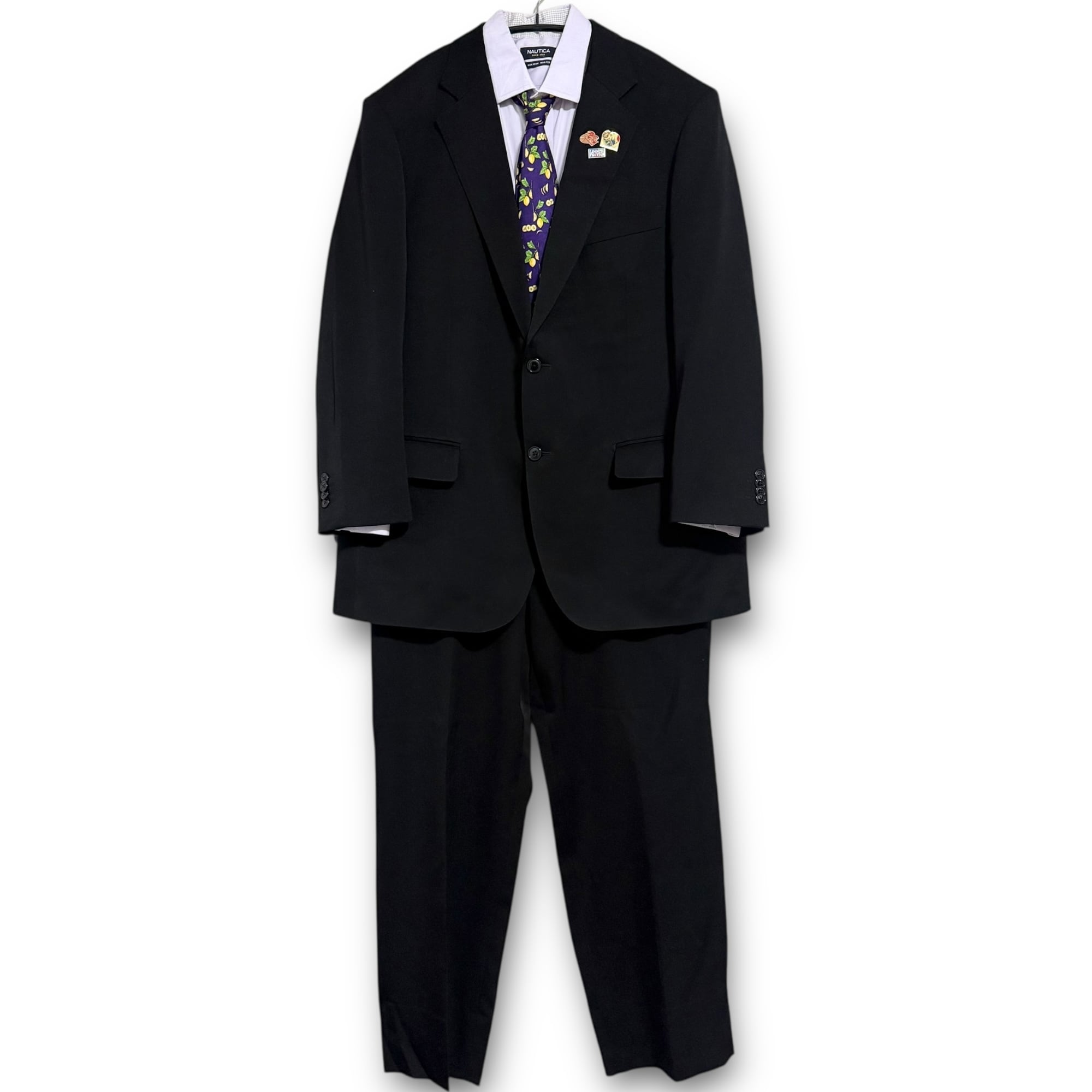 "REGAL" black set-up & "nautica" light purple shirt & "dunhill" purple tie & vintage pins / "リーガル"ブラックセットアップ&"ノーティカ"パープルシャツ&"ダンヒル"パープルネクタイ&ビンテージピンズ