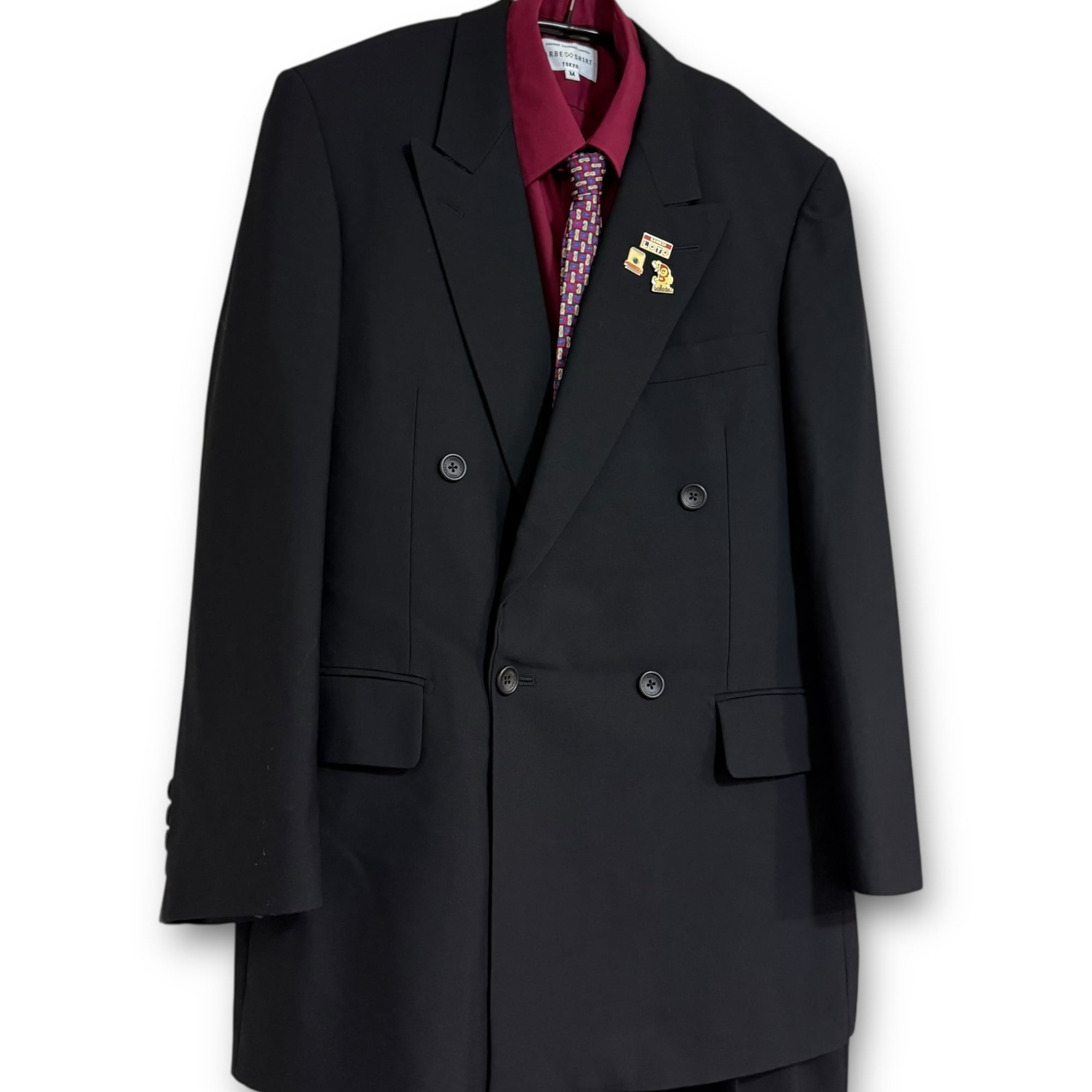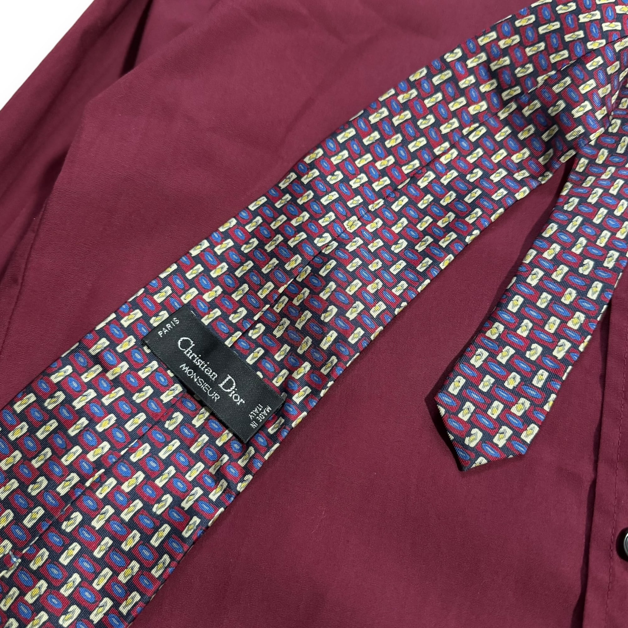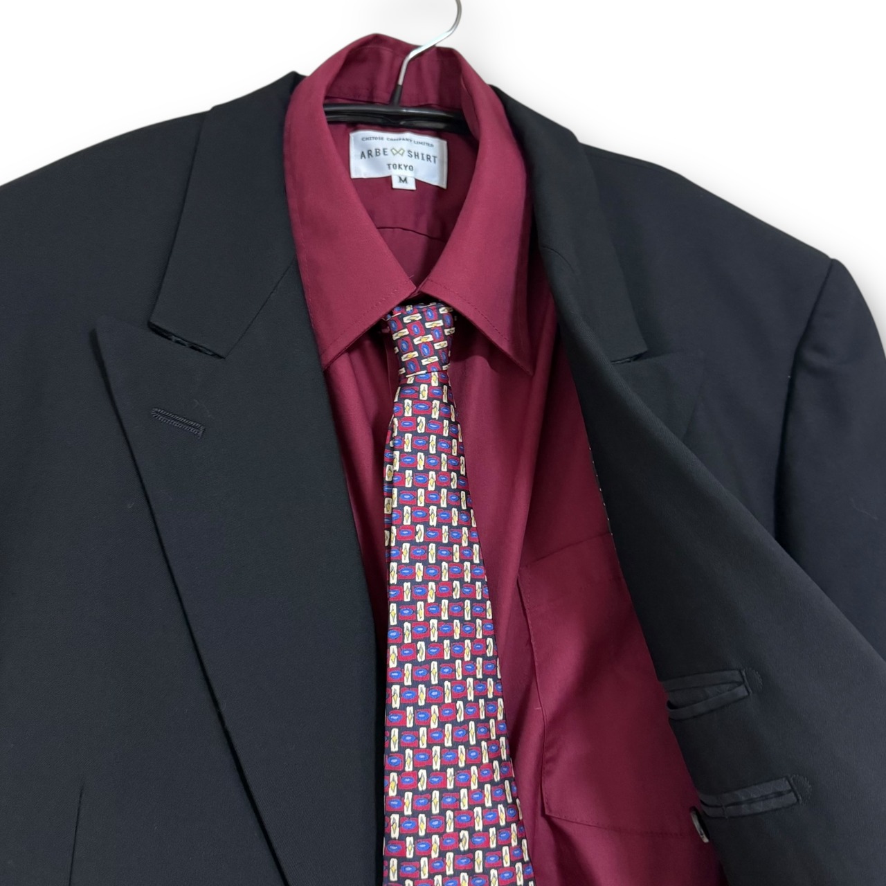 wool cashmere set-up & wine red shirt & "Dior" tie & vintage pins / ウールカシミヤセットアップ&ワインレッドシャツ&"ディオール" ネクタイ&ビンテージピンズ