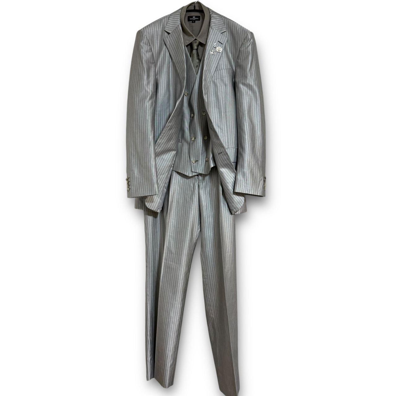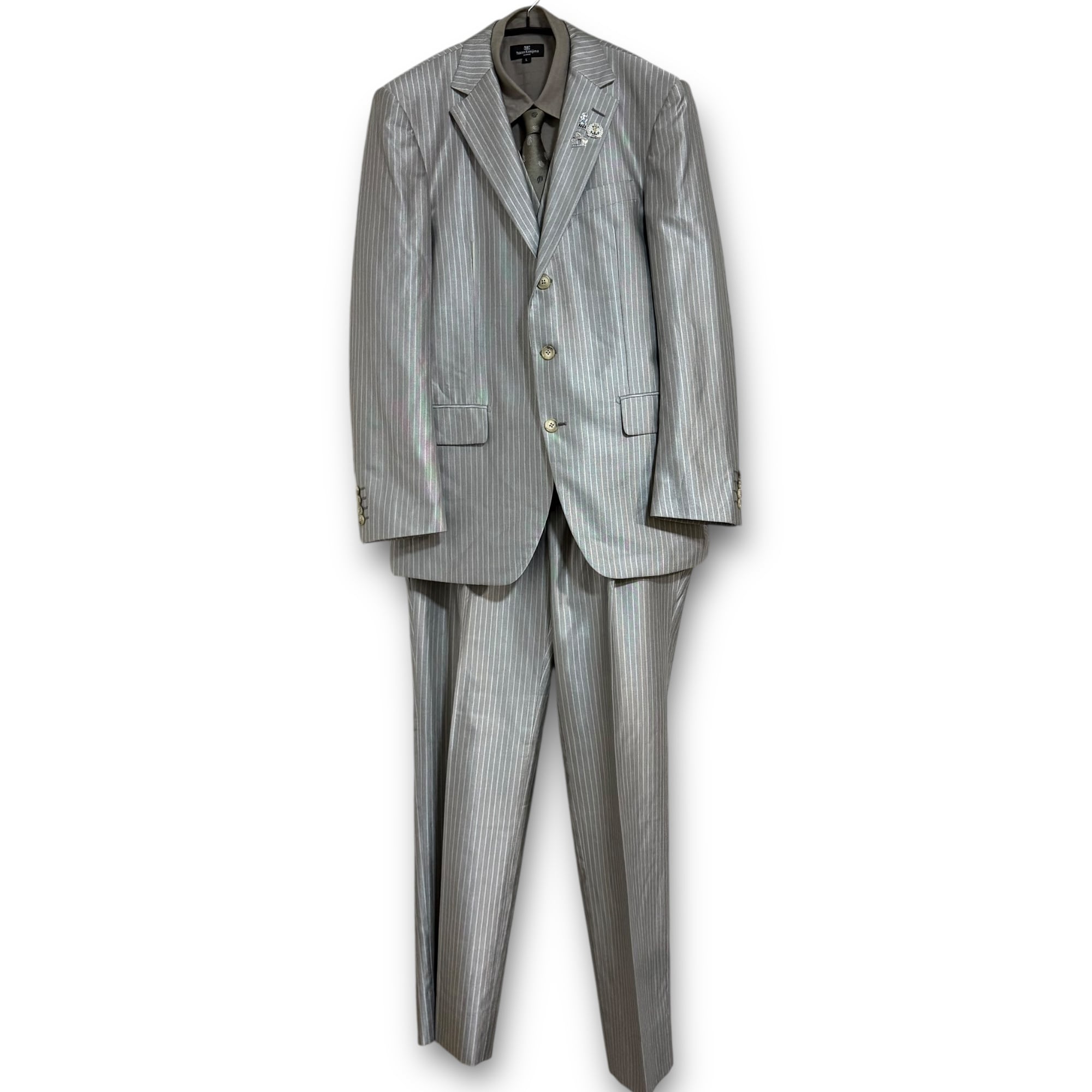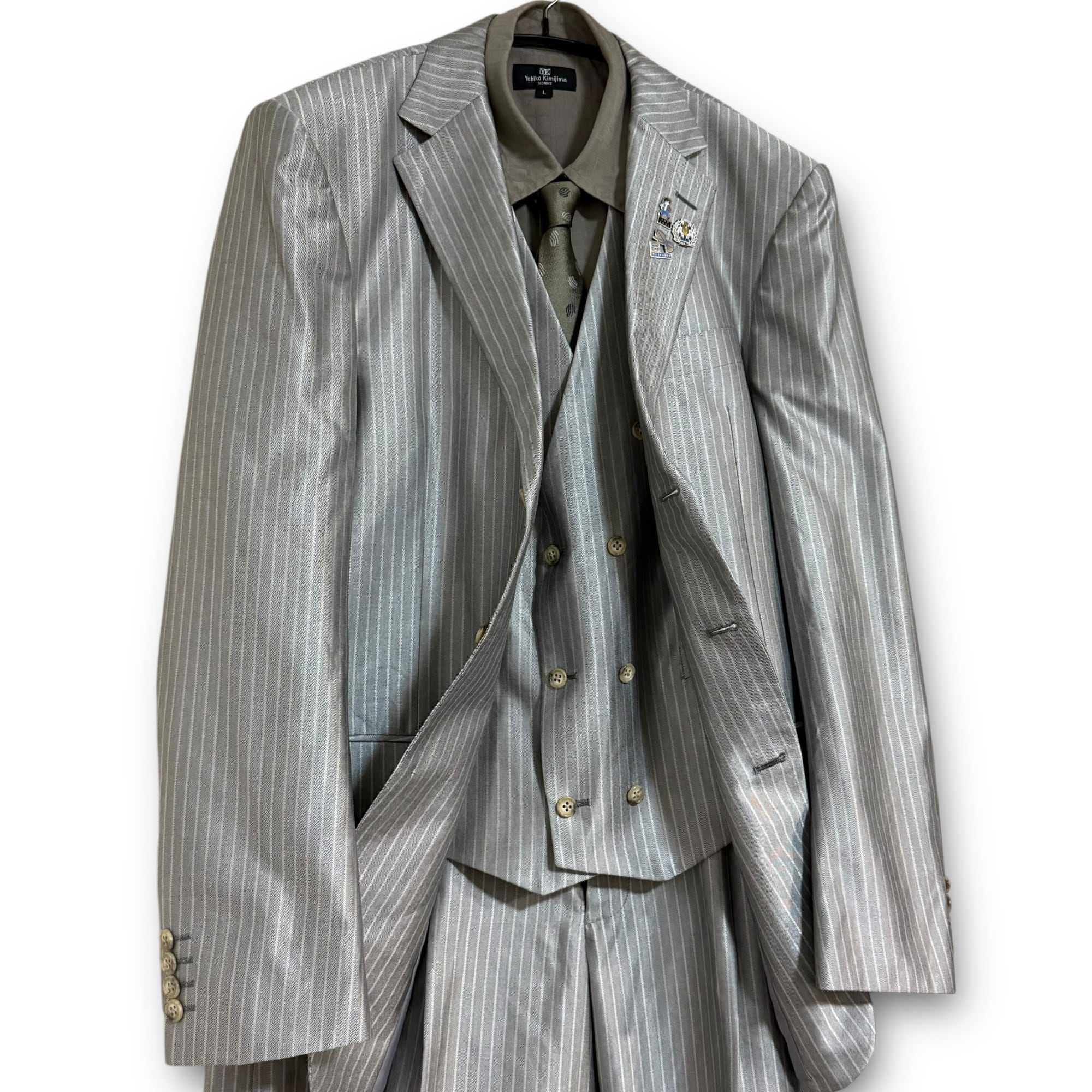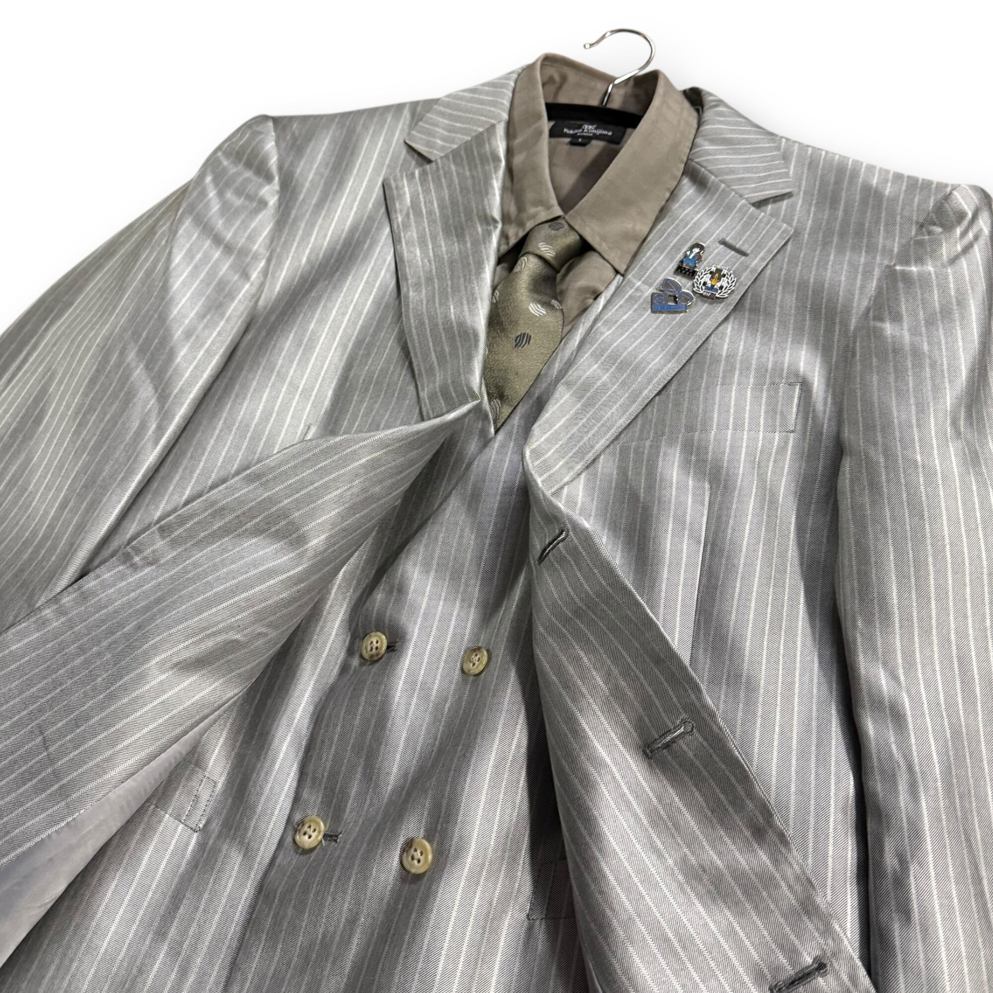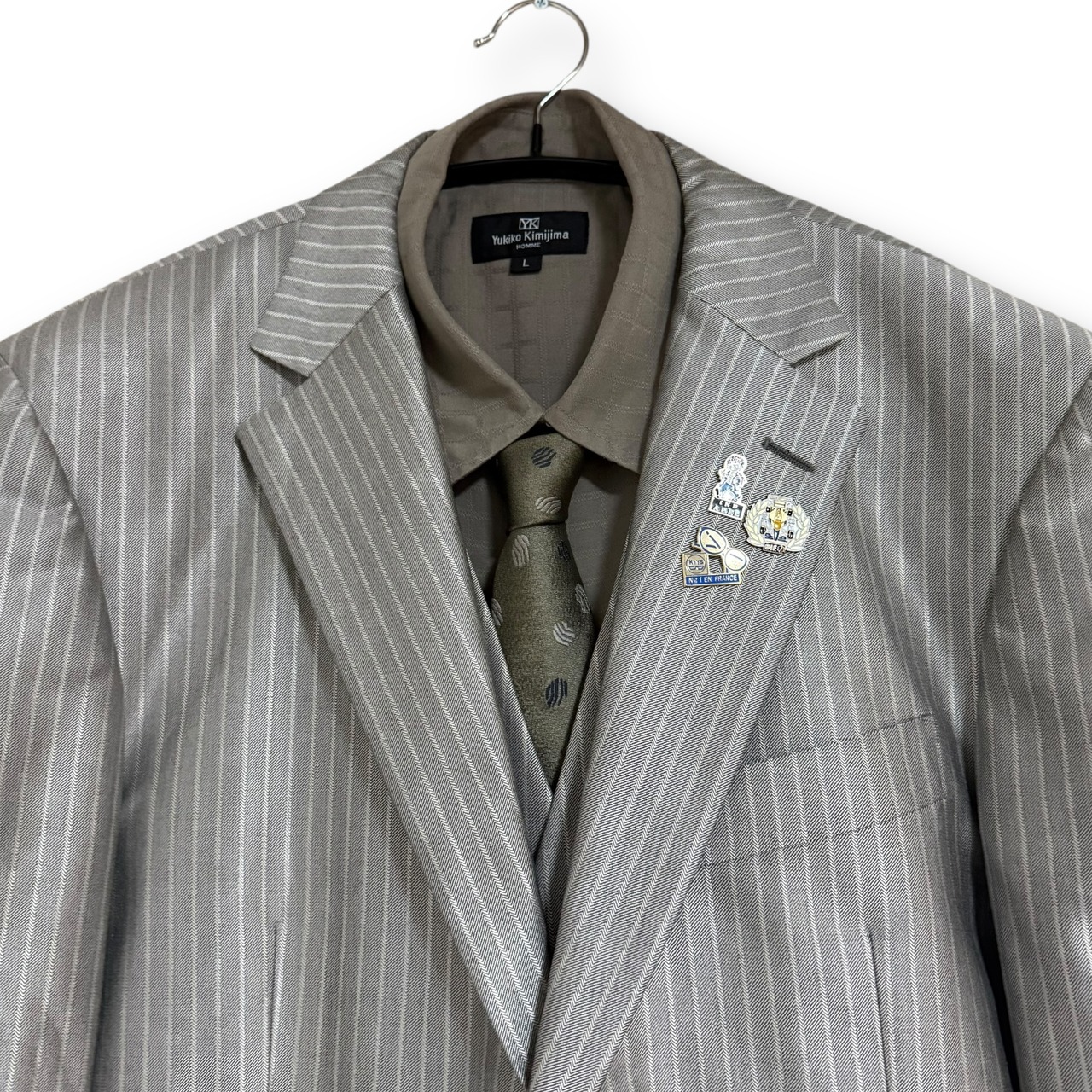 silk wool silver 3piece set-up & drape shirt & "BALMAIN" tie & vintage pins / シルクウールシルバーセットアップ&ドレープシャツ&"バルマン" ネクタイ&ビンテージピンズ