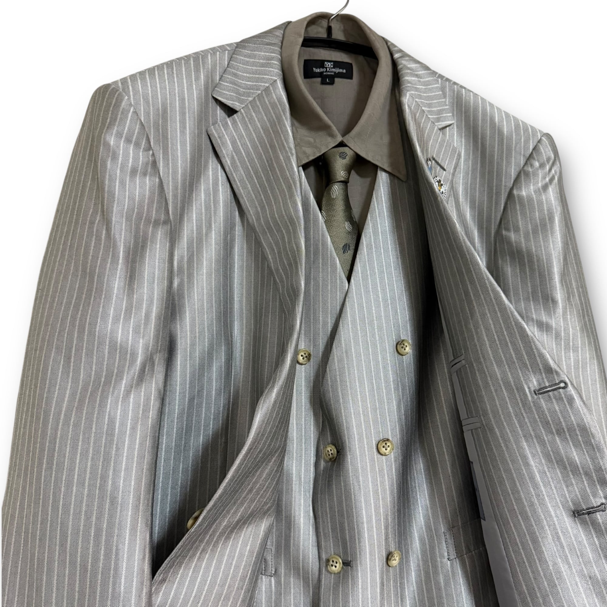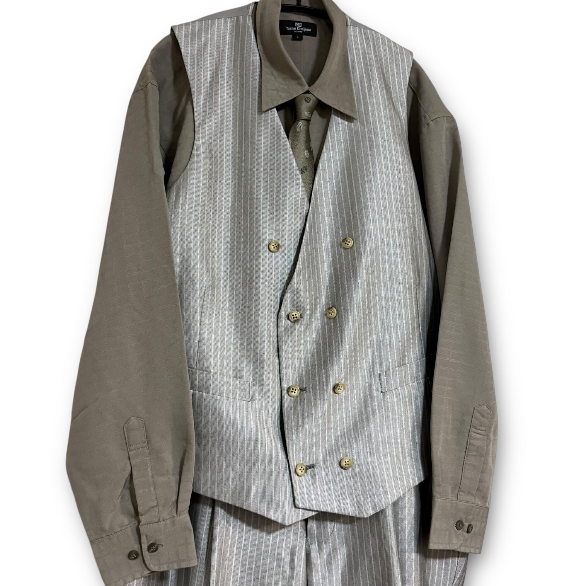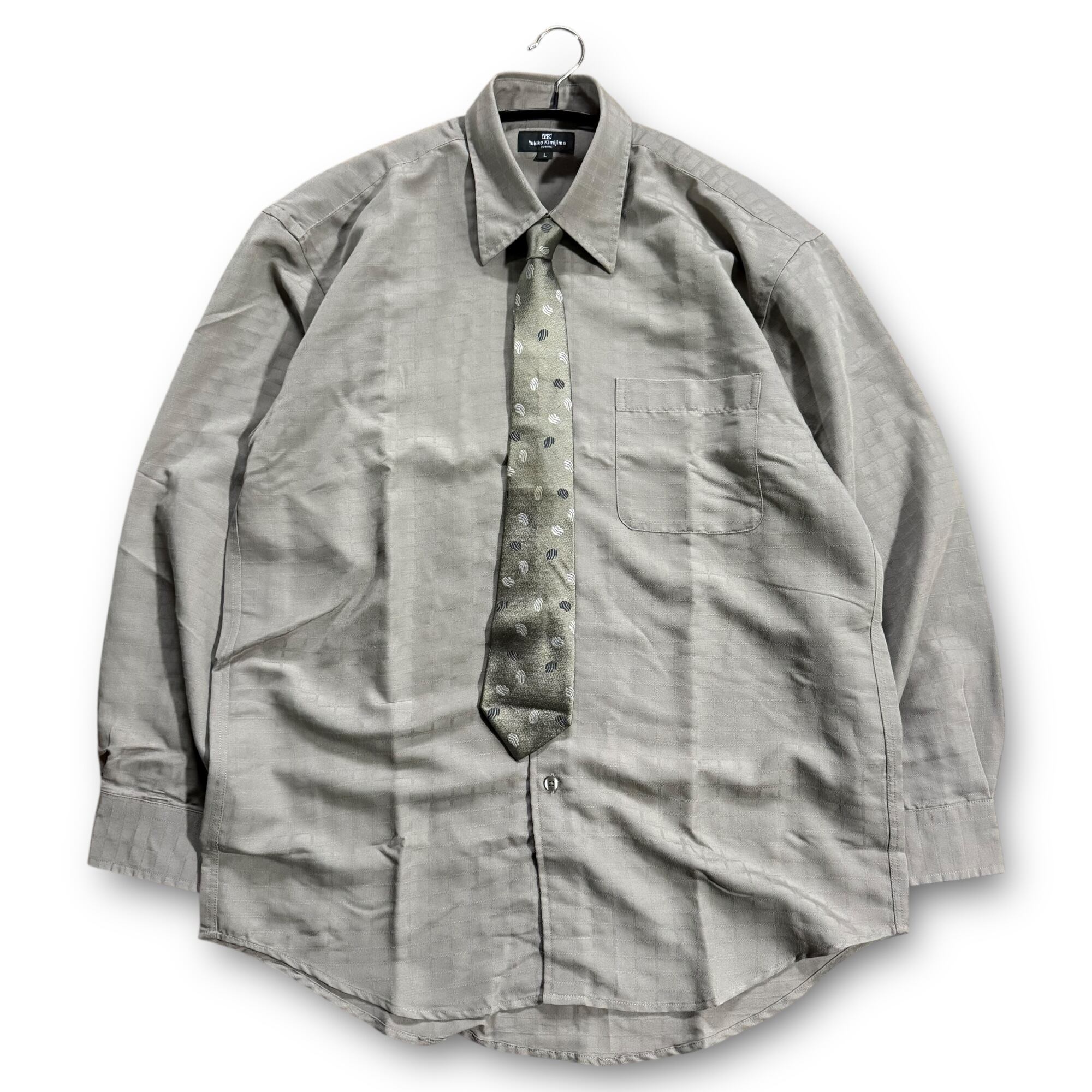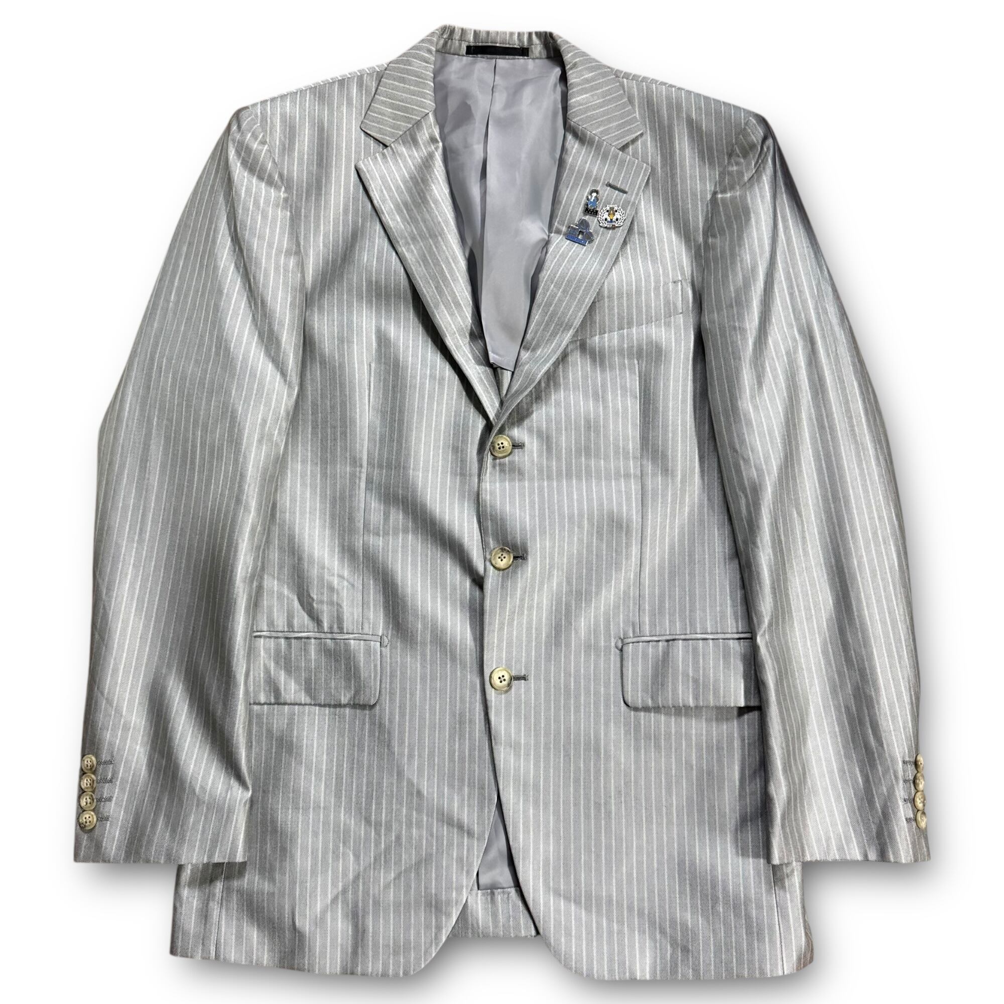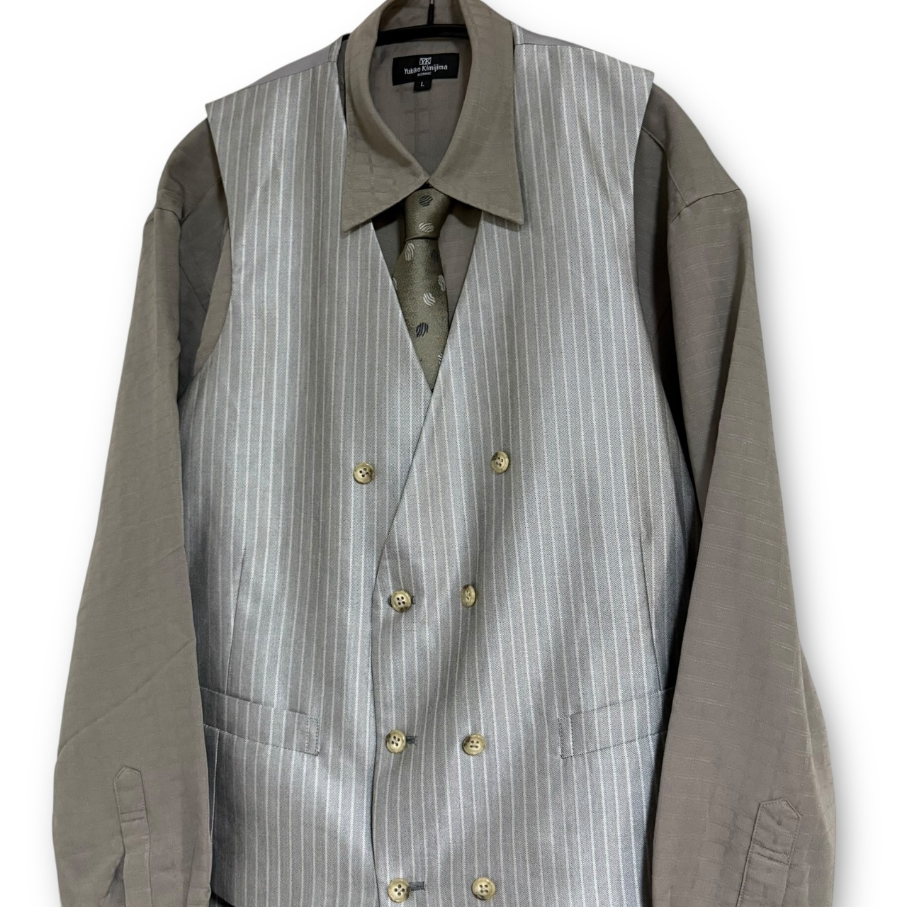 silk wool silver 3piece set-up & drape shirt & "BALMAIN" tie & vintage pins / シルクウールシルバーセットアップ&ドレープシャツ&"バルマン" ネクタイ&ビンテージピンズ