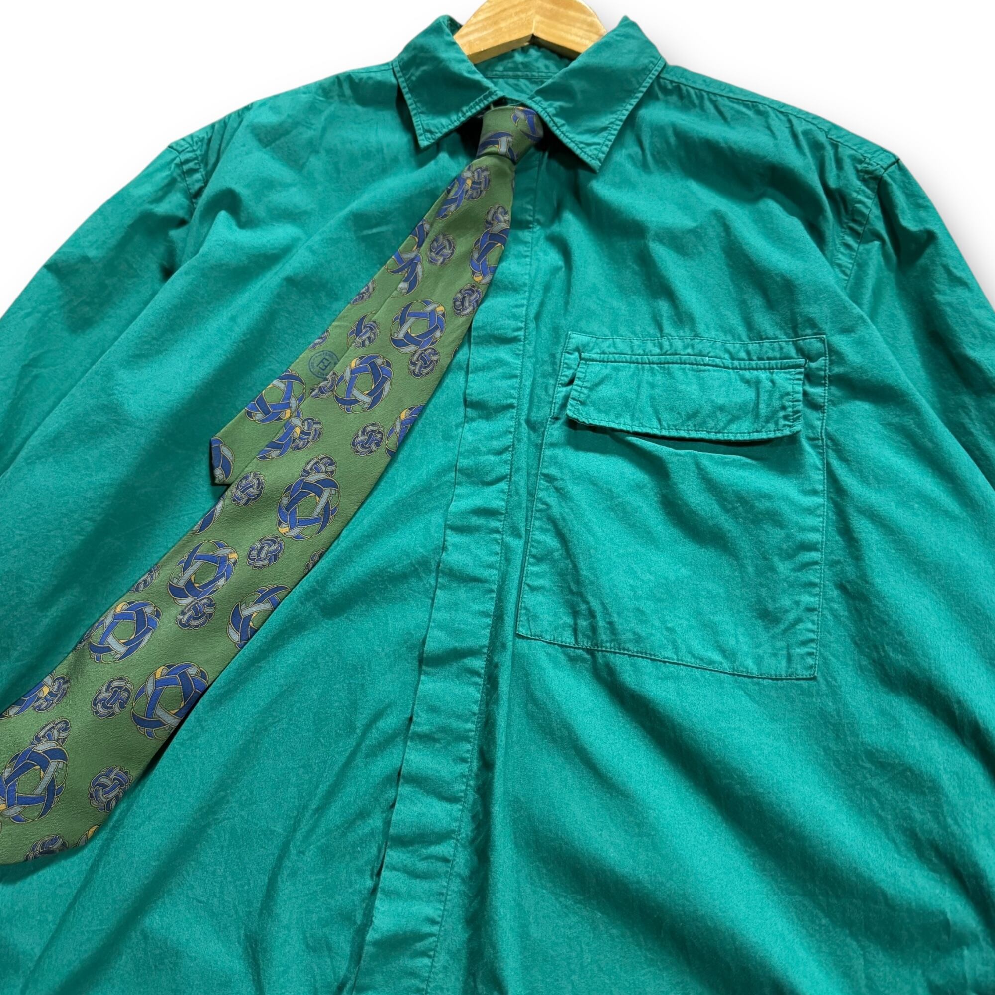 3botton set-up & green shirt & "FENDI" tie & vintage pins / 3ボタンセットアップ&グリーンシャツ&"フェンディ" ネクタイ&ビンテージピンズ