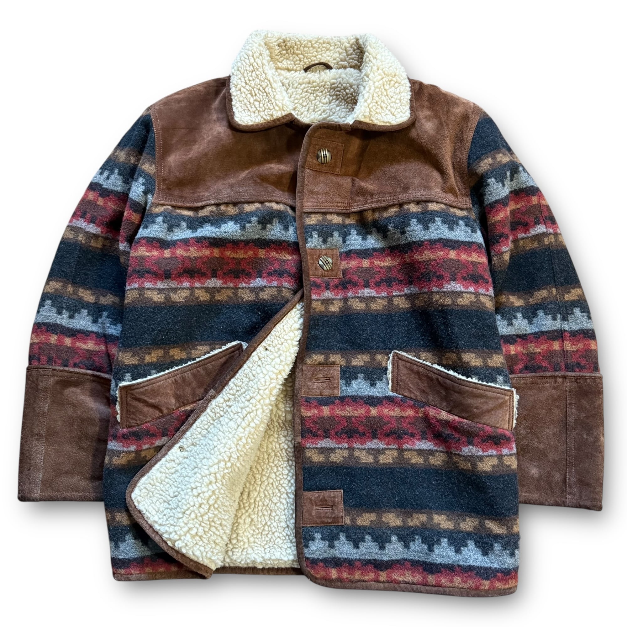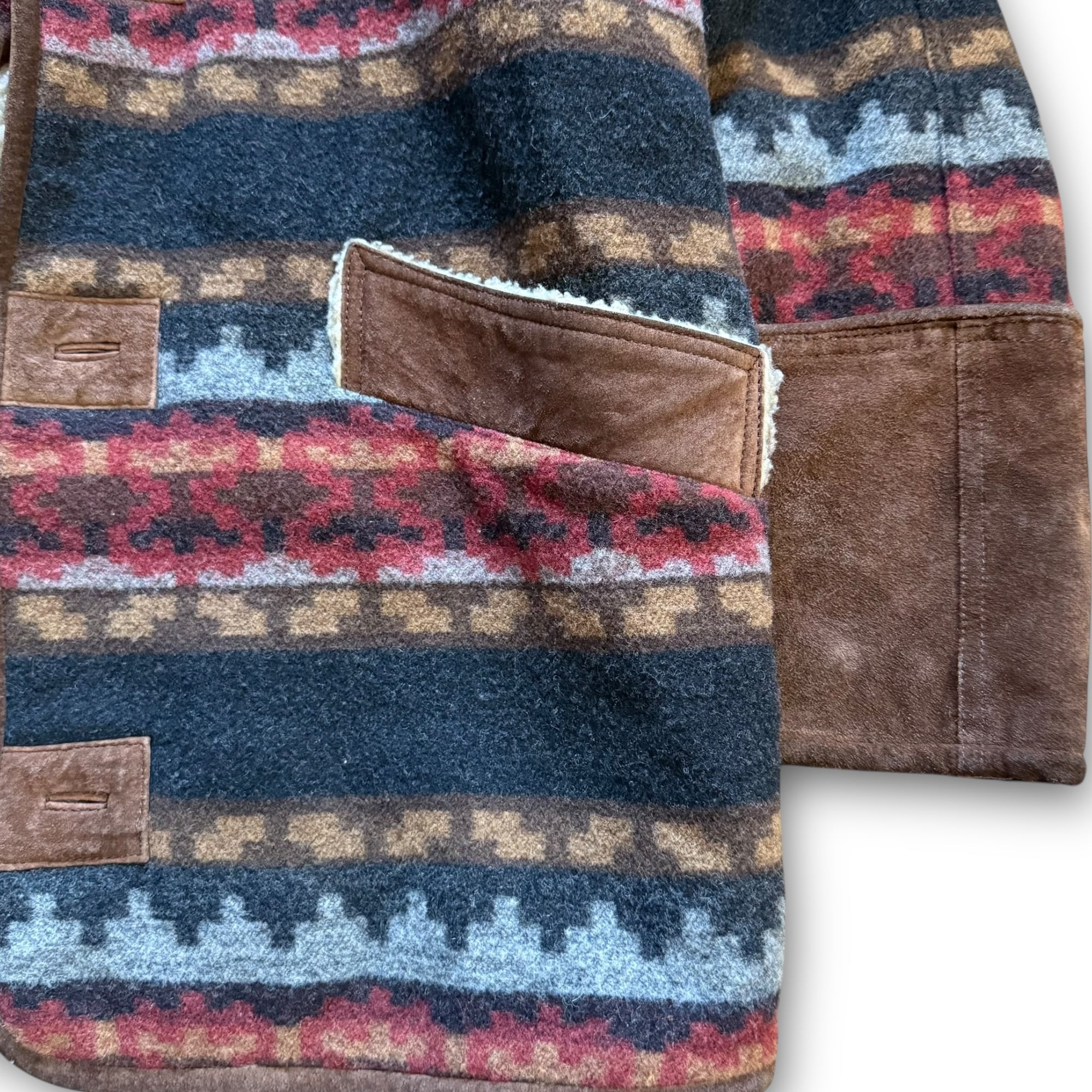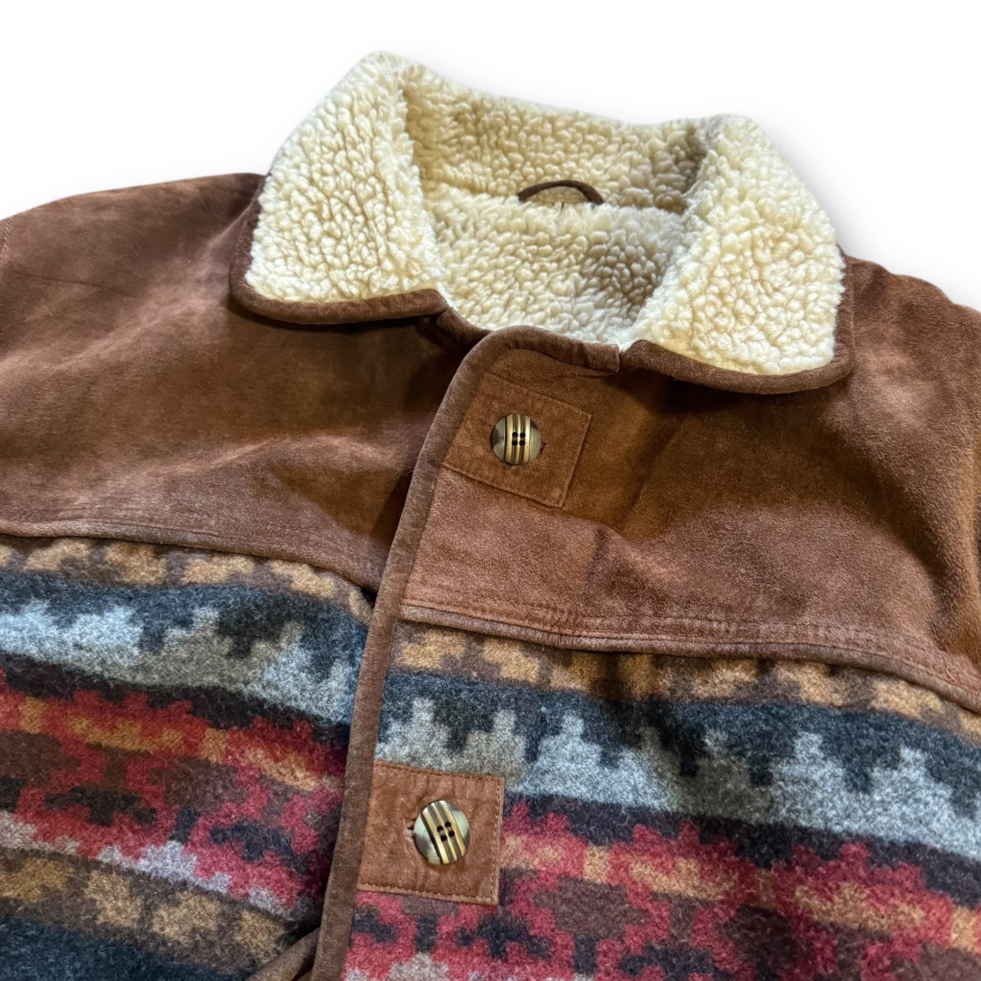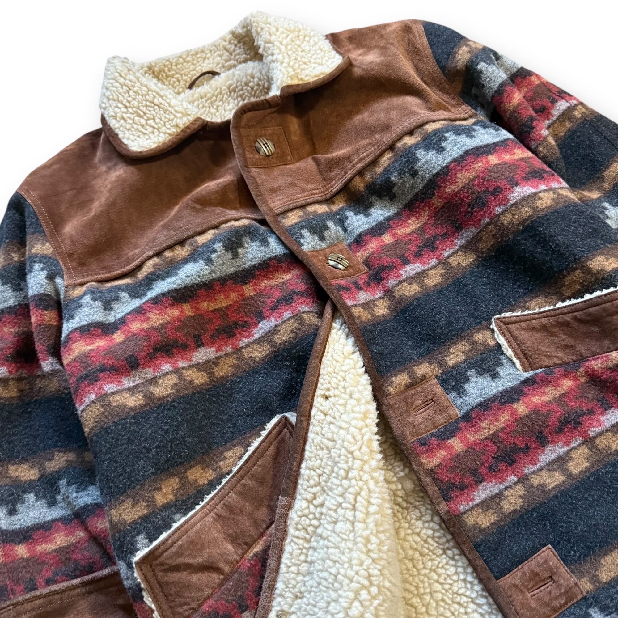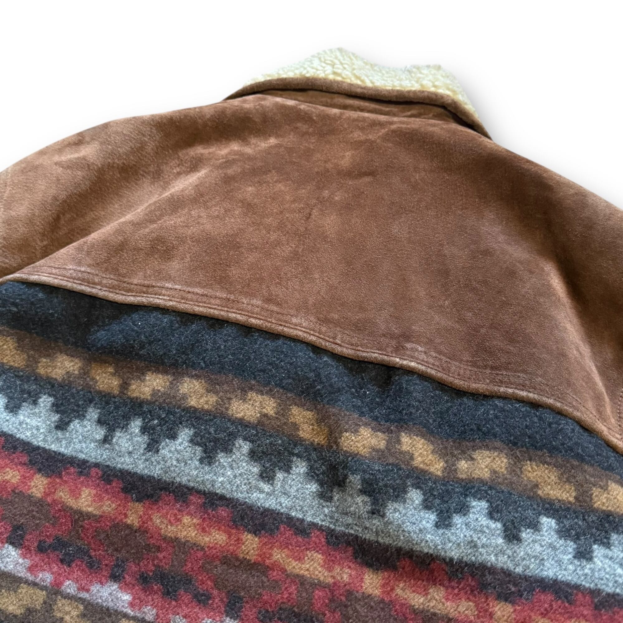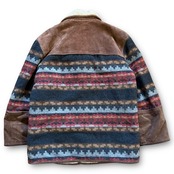 90's leather wool blanket design boa jacket / レザーウールブランケットデザインボアジャケット