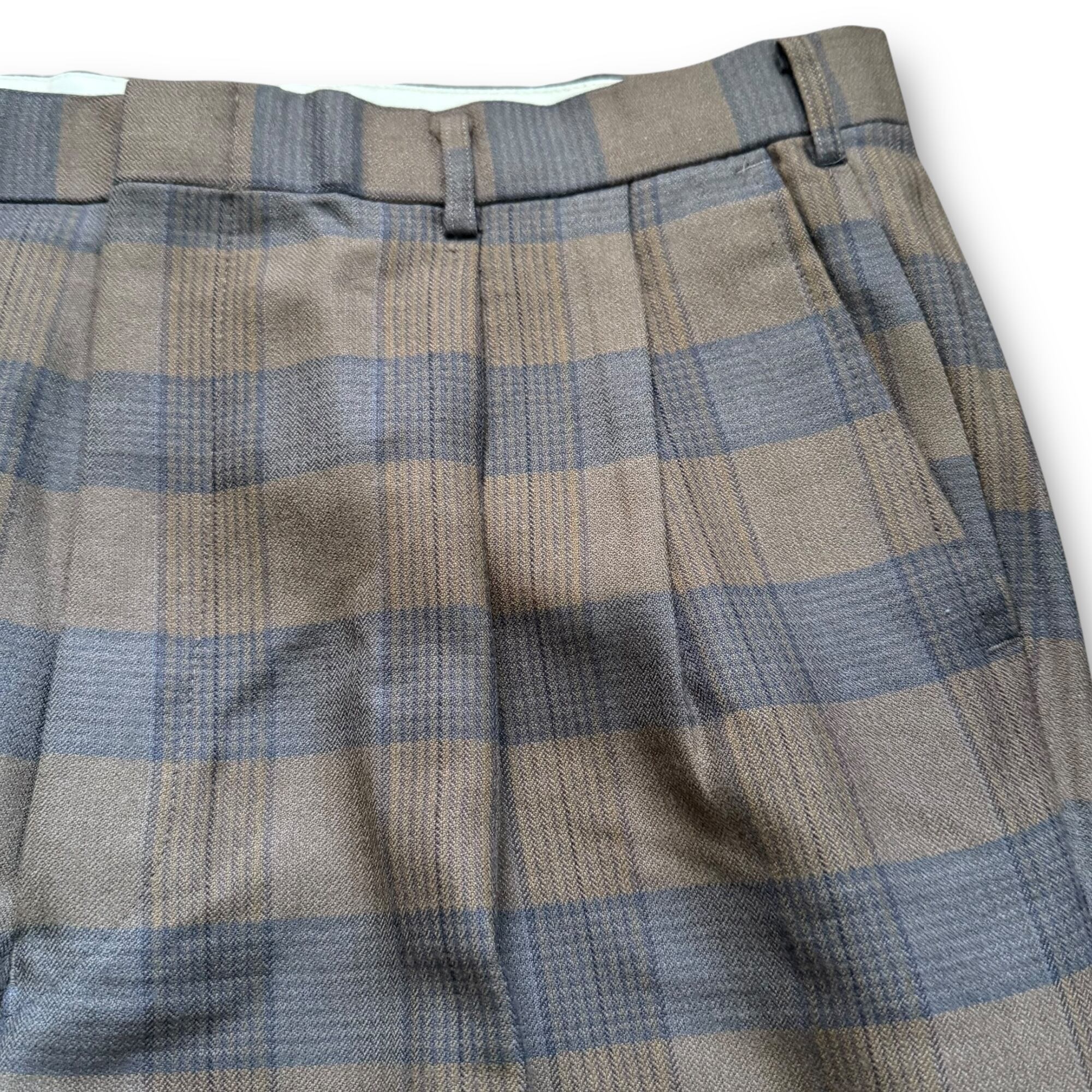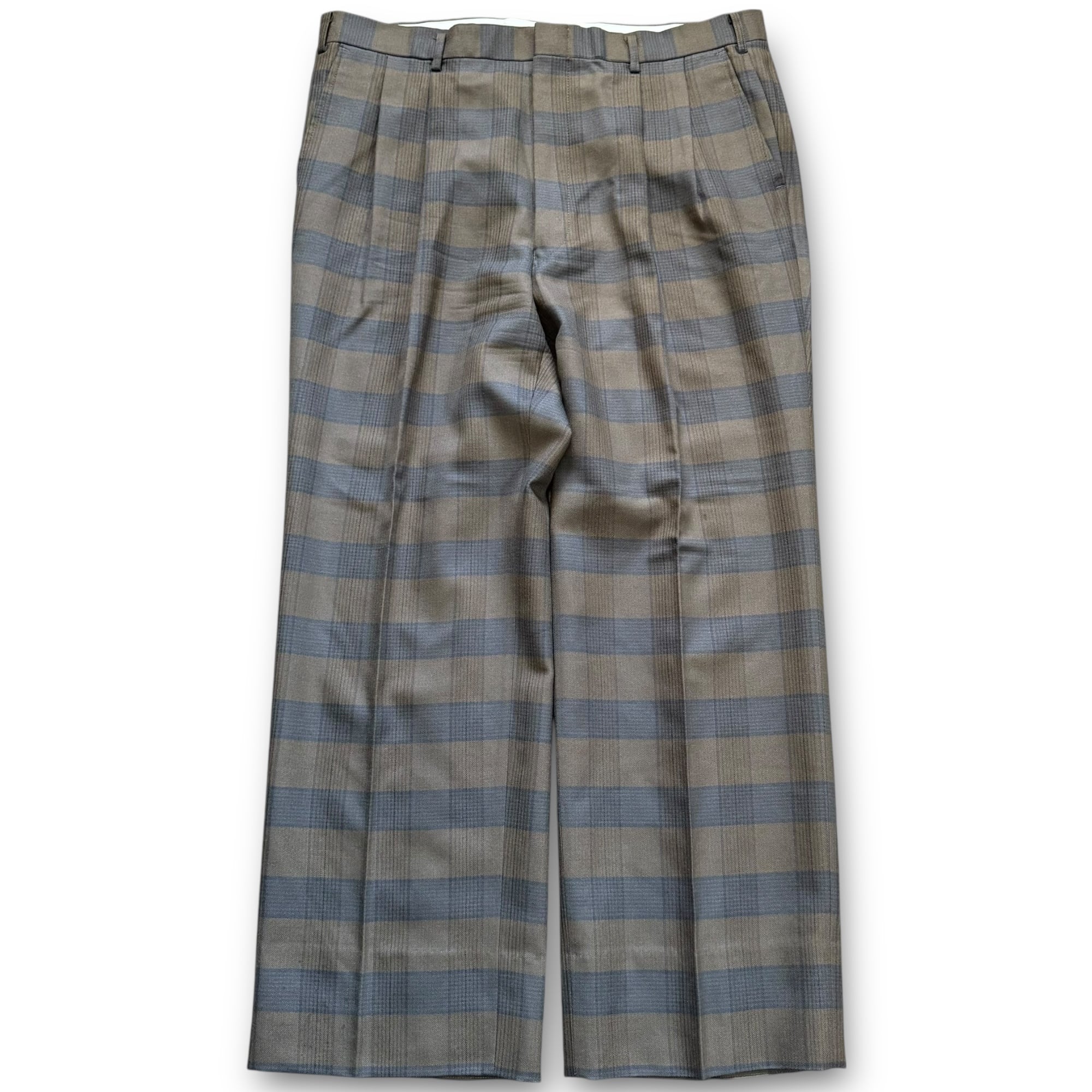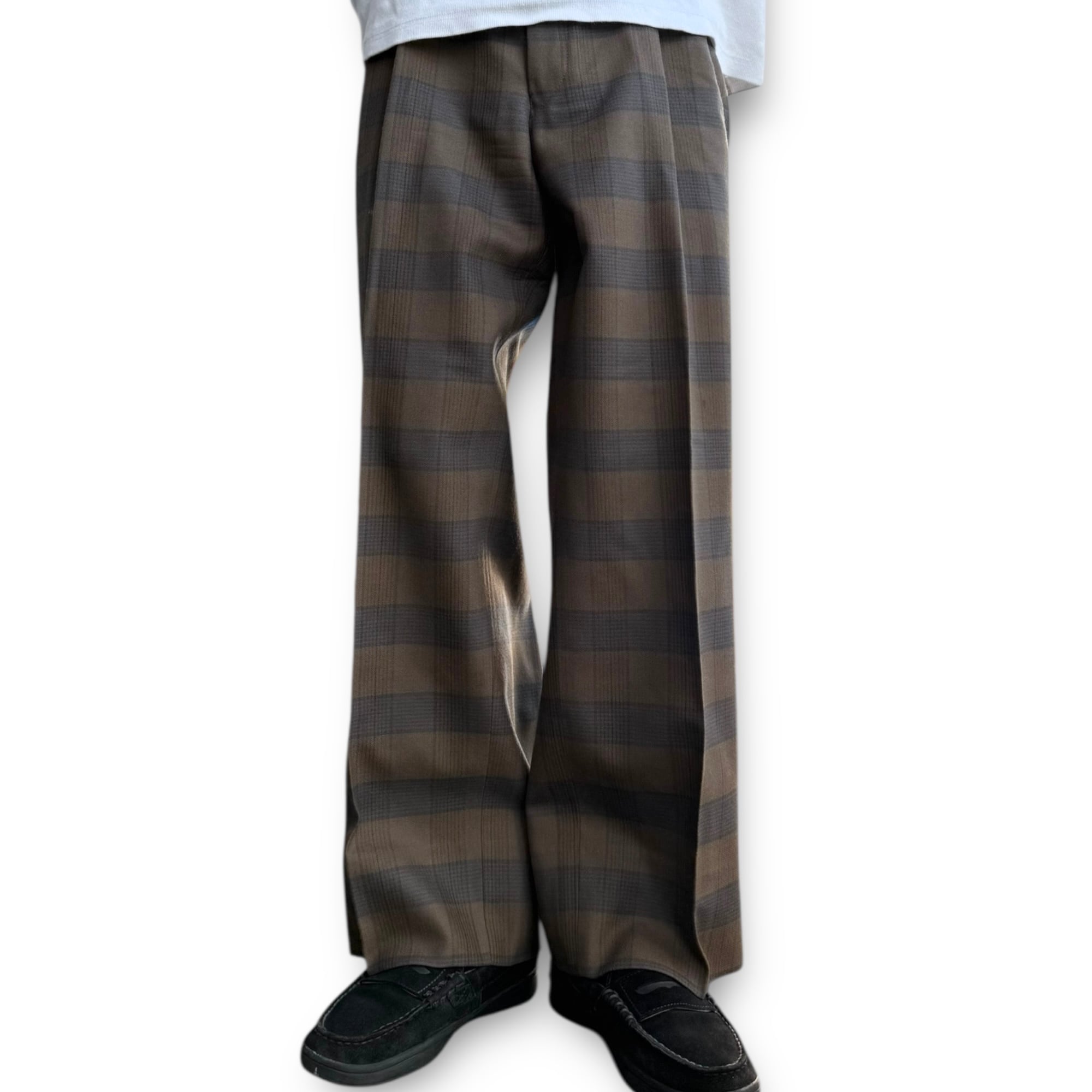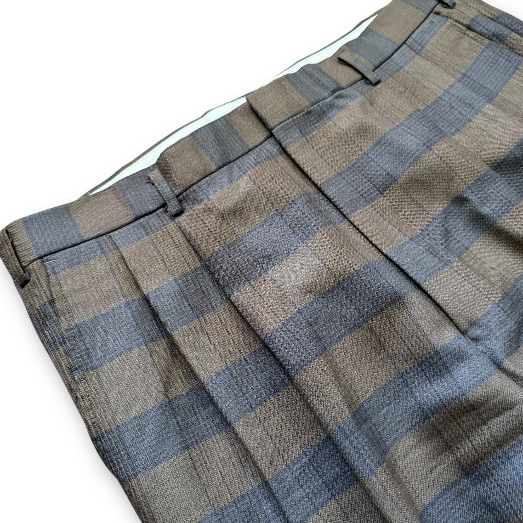 2tuck brown check wool slacks / 2タックブラウンウールチェックスラックス
