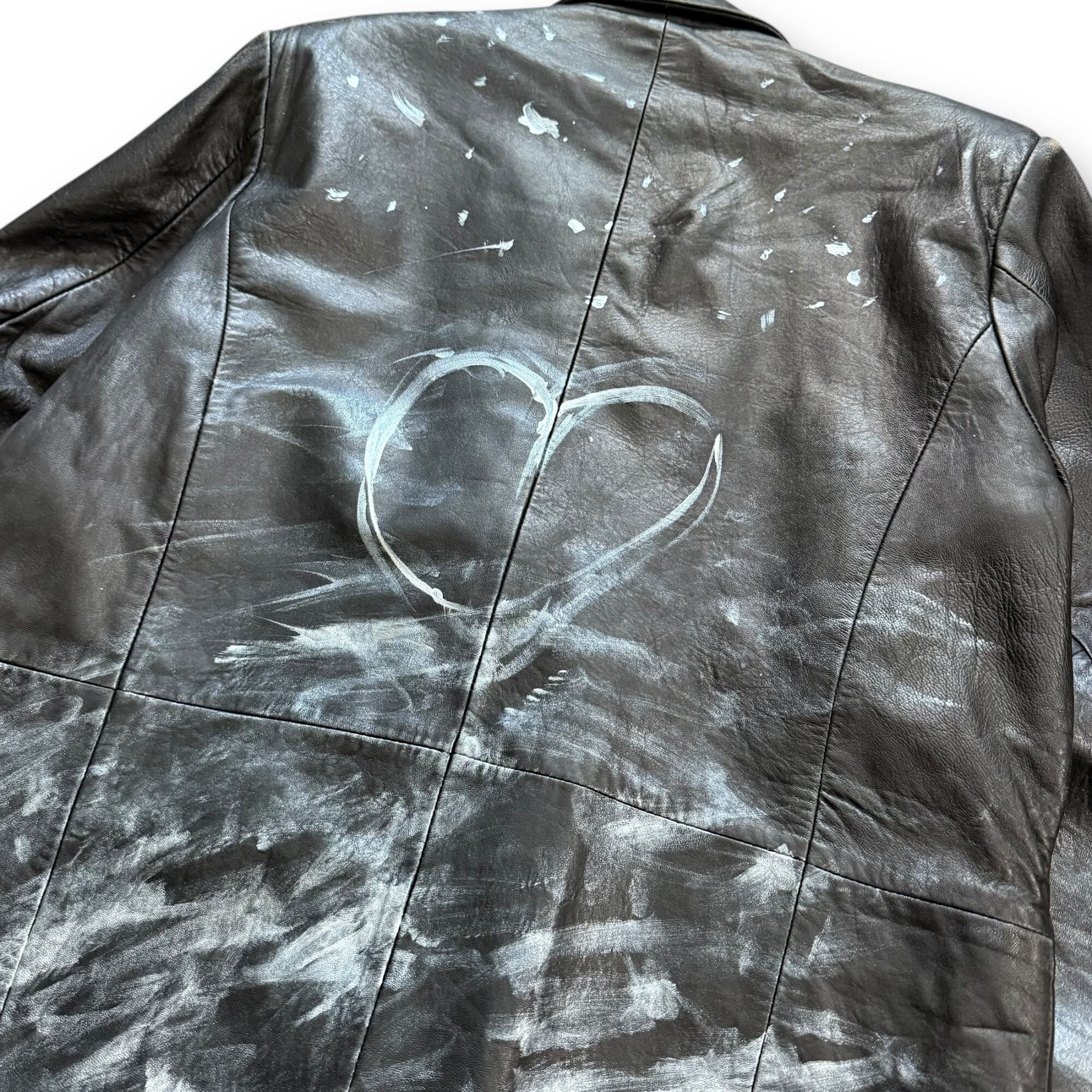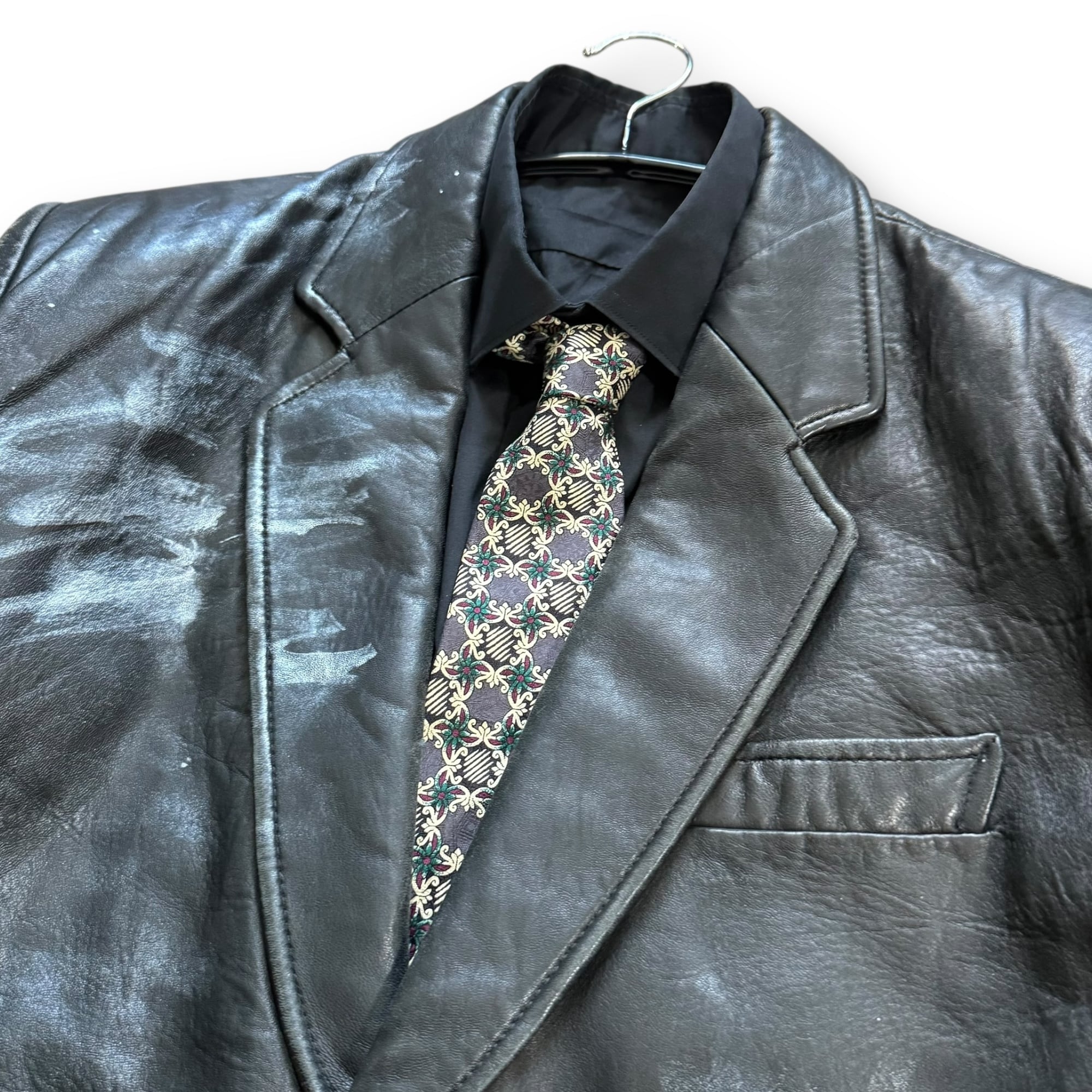 custom silver paint leather tailored jacket & black shirt & design tie / カスタムシルバーペイントレザーテーラードジャケット&ブラックシャツ&デザインネクタイ