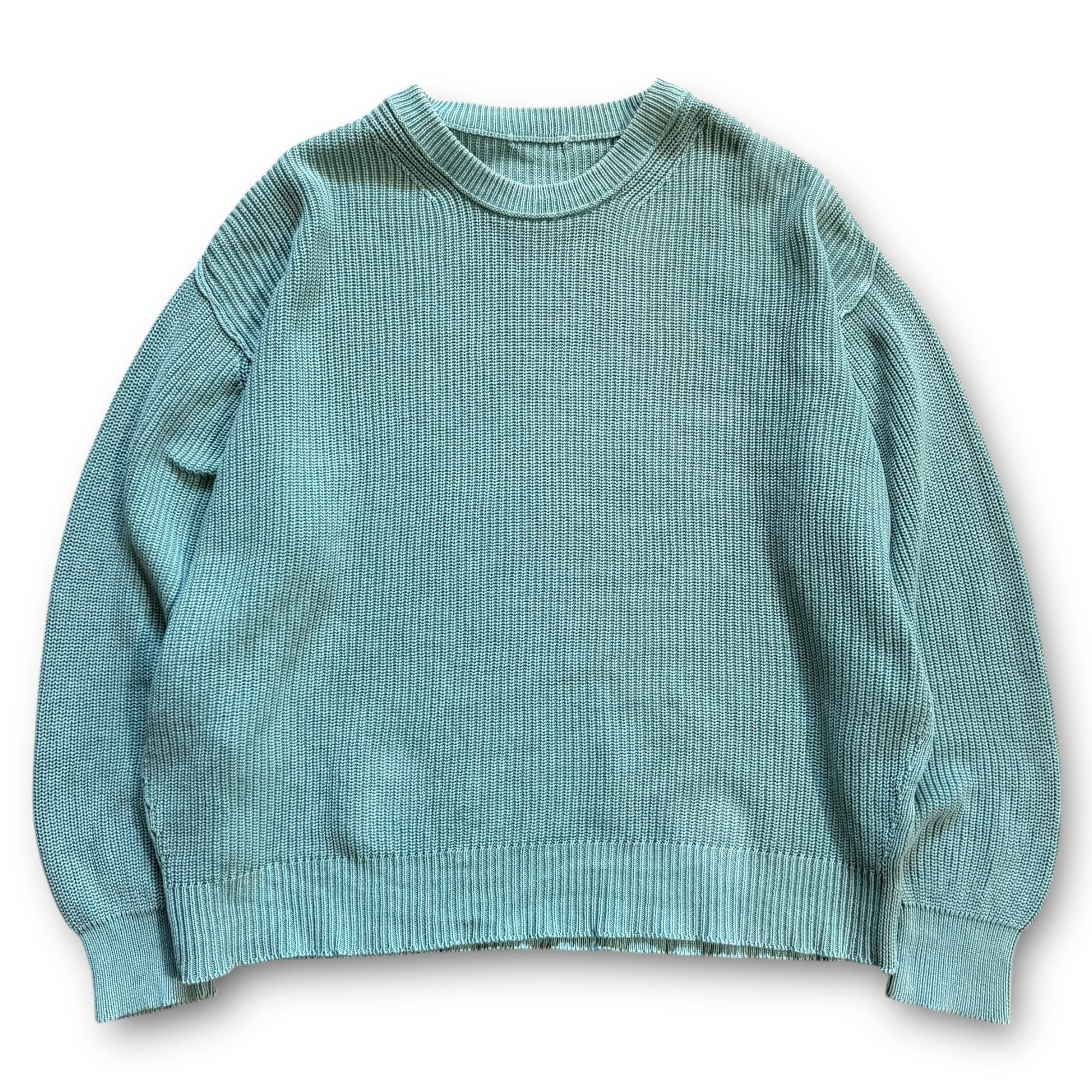 washed green plane cotton knit / ウォッシュグリーンプレーンコットンニット