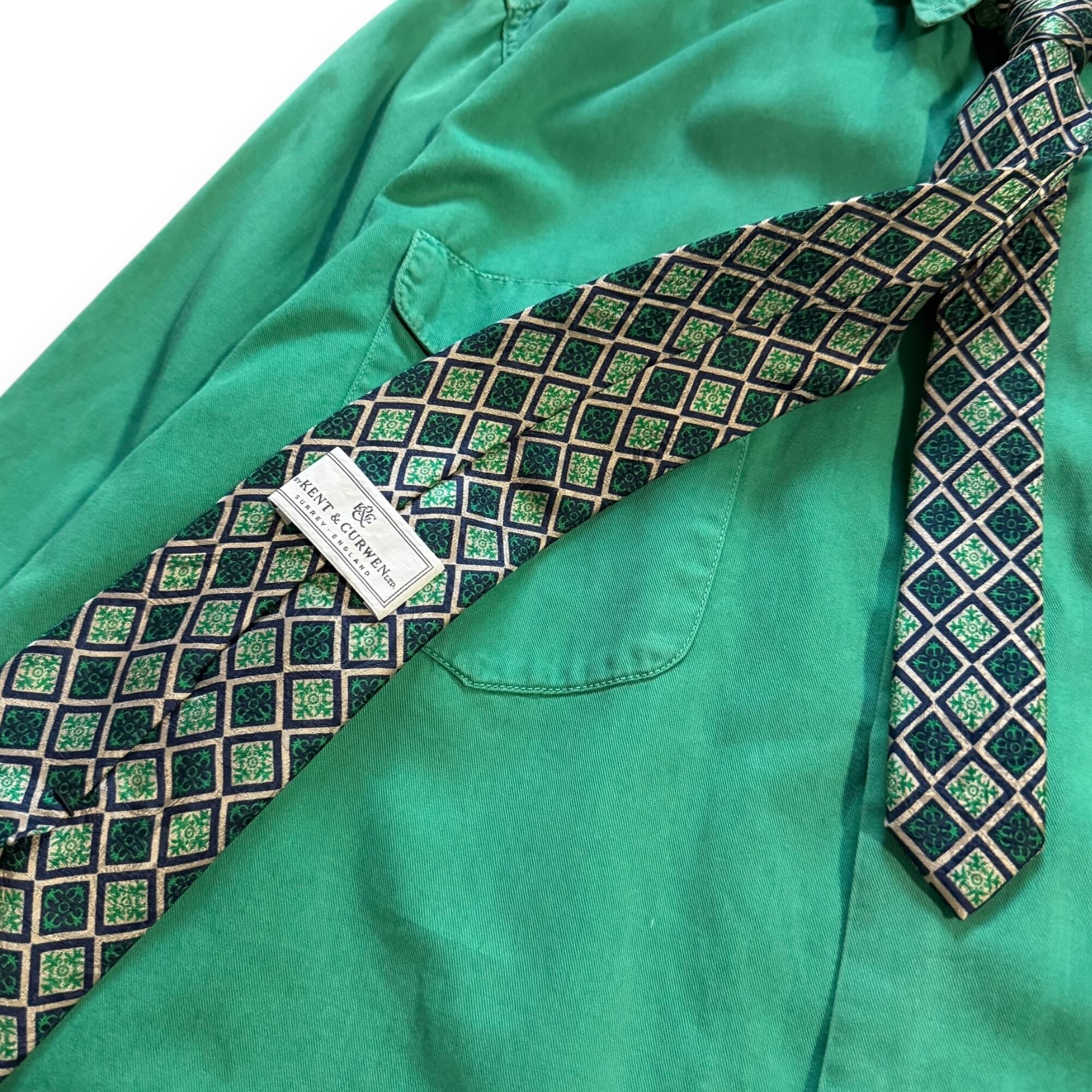 dark brown set-up & green shirt & design tie & vintage pins / ダークブラウンセットアップ&グリーンシャツ&デザインネクタイ&ビンテージピンズ