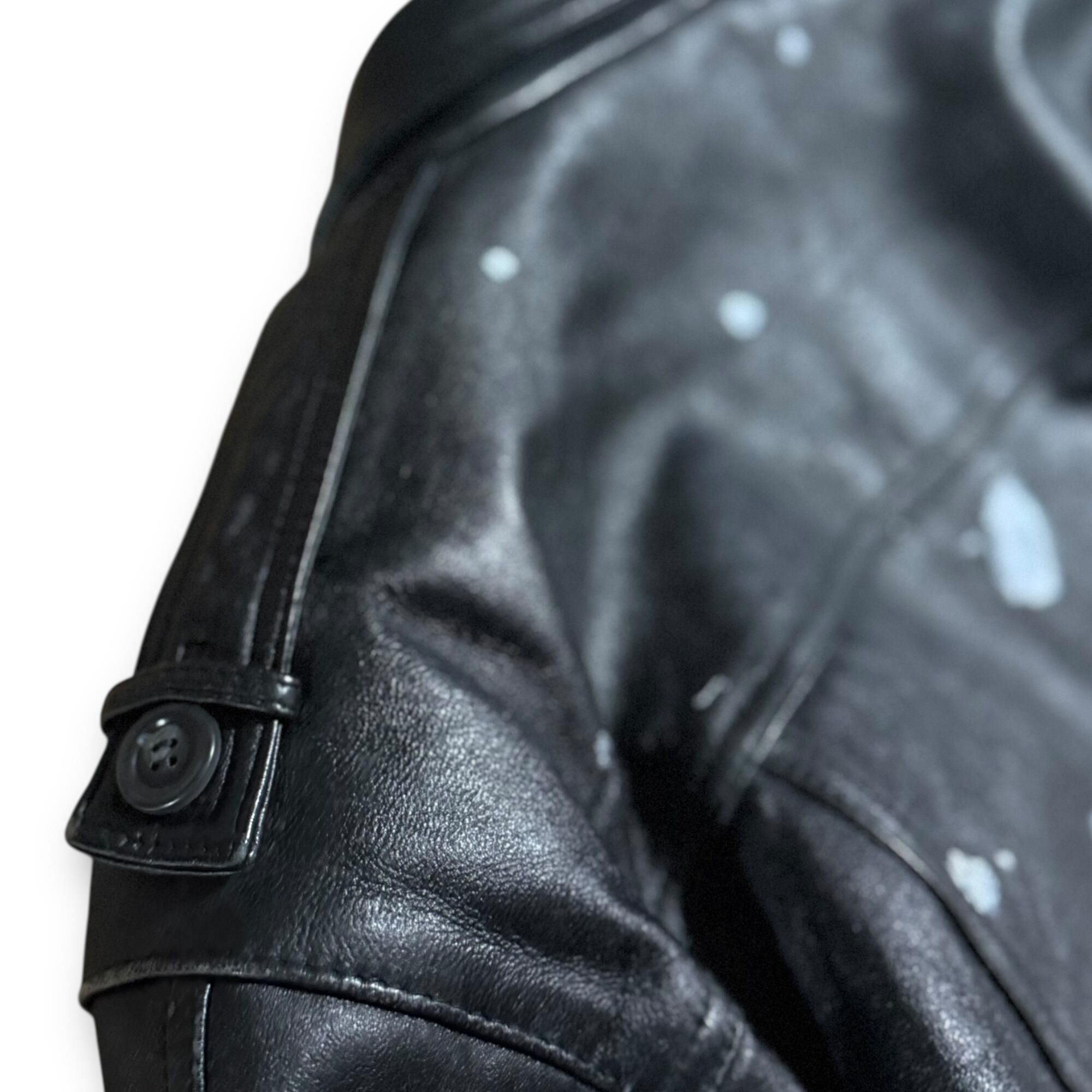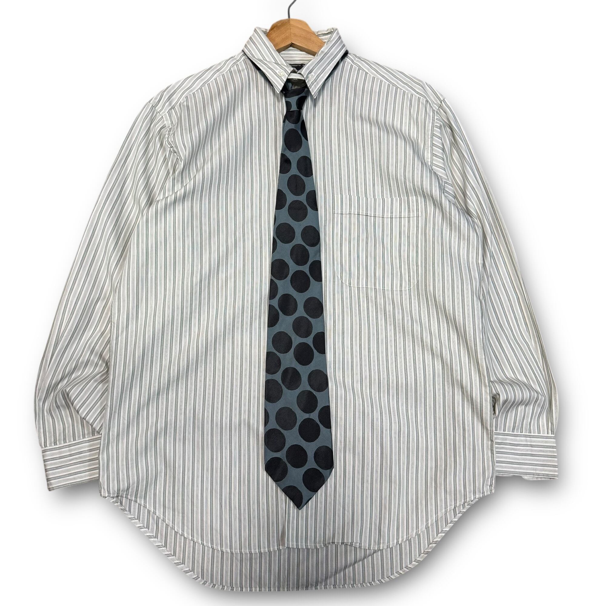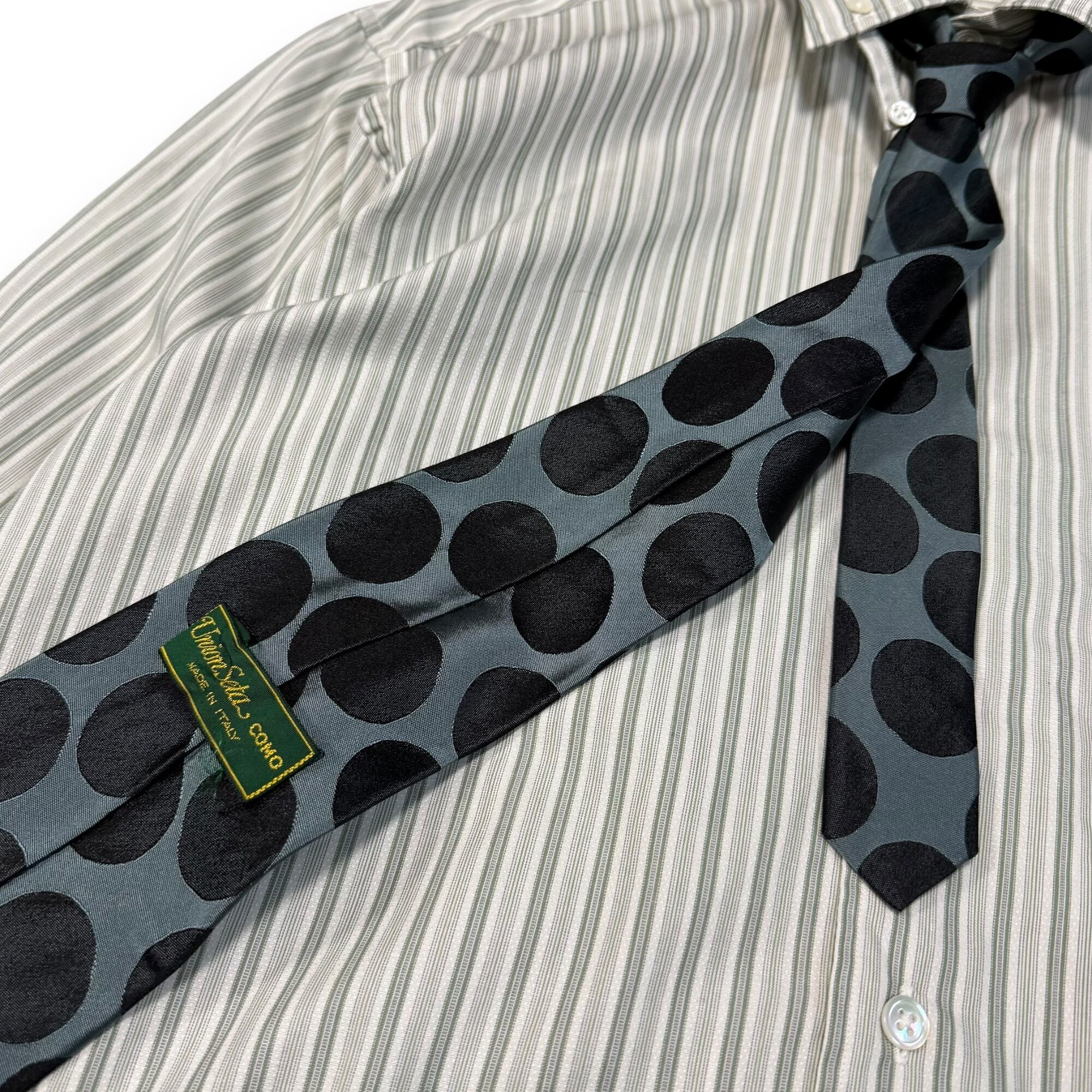 90's silver paint leather jacket & green stripe shirt & polka dots tie / シルバーペイントレザージャケット&グリーンストライプシャツ&ポルカドットネクタイ