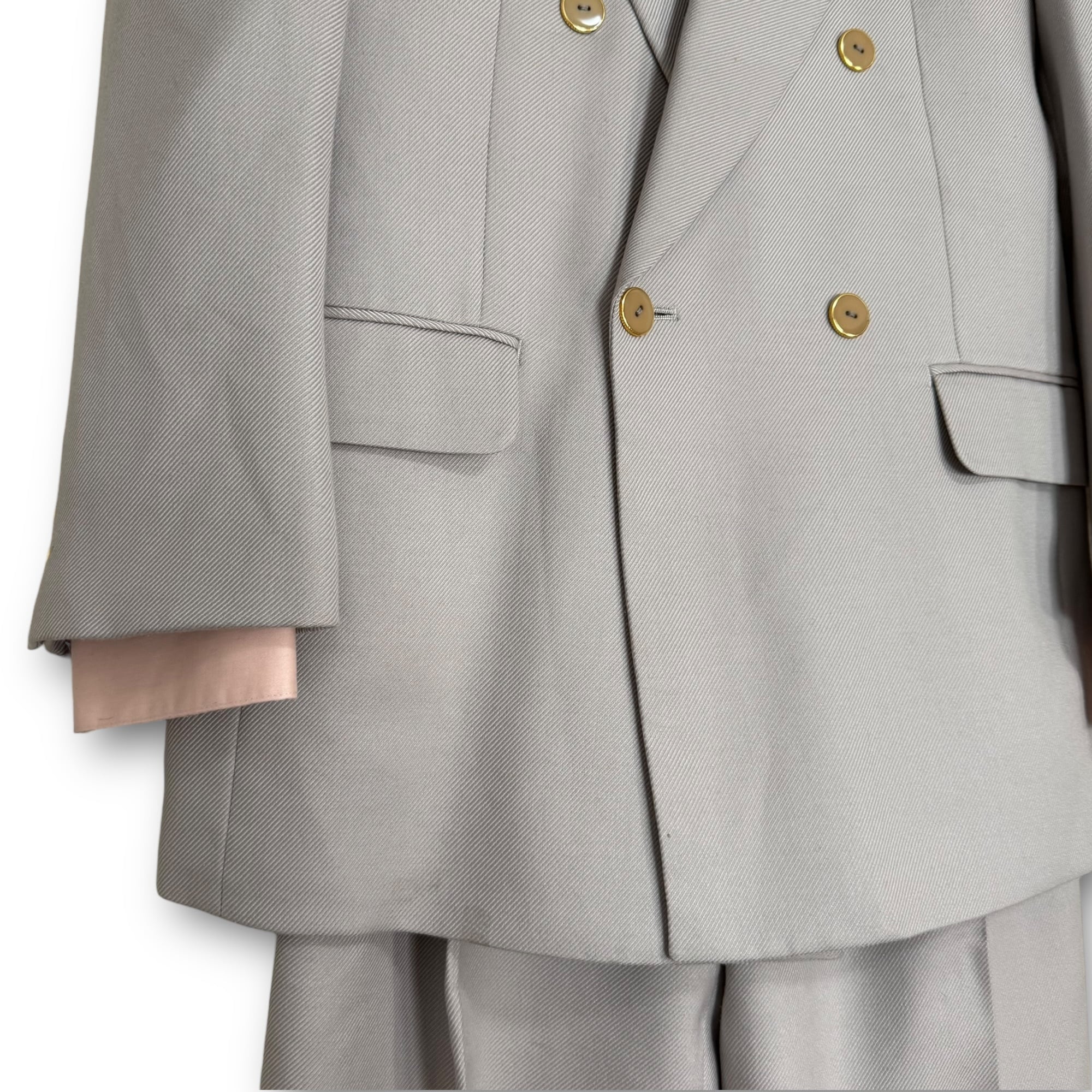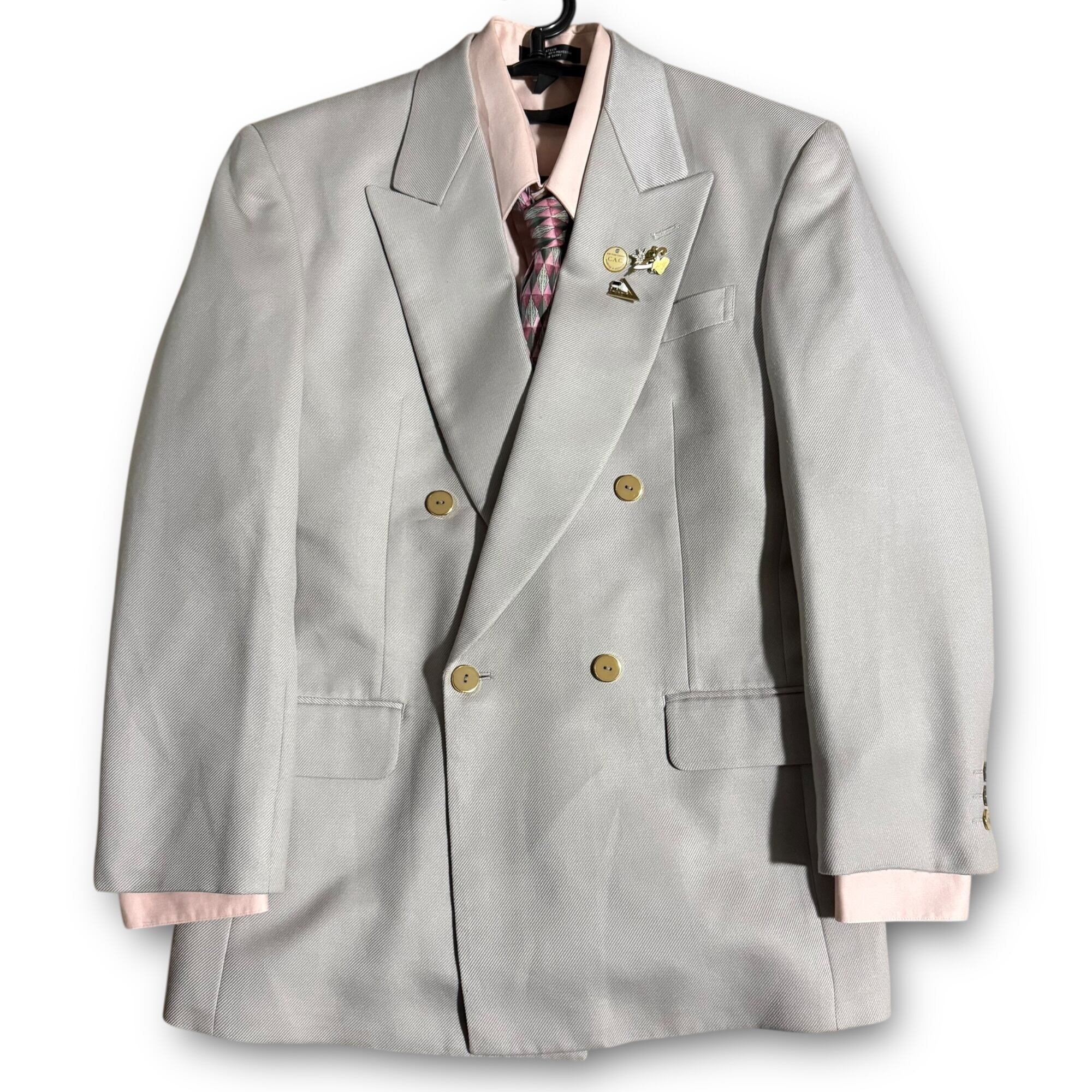 light grey set-up & pink shirt & "LANVIN" tie & vintage pins / ライトグレーセットアップ&ピンクシャツ&"ランバン" ネクタイ&ビンテージピンズ