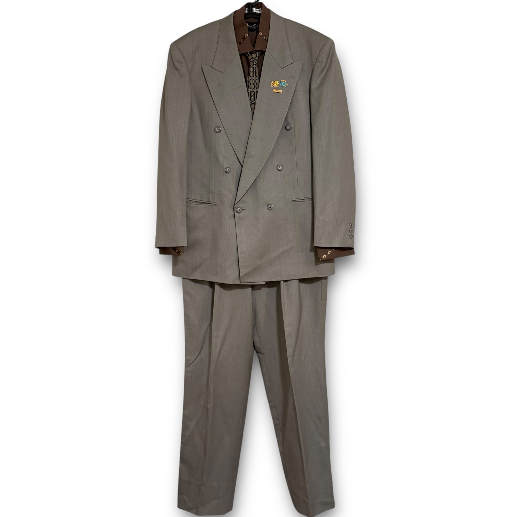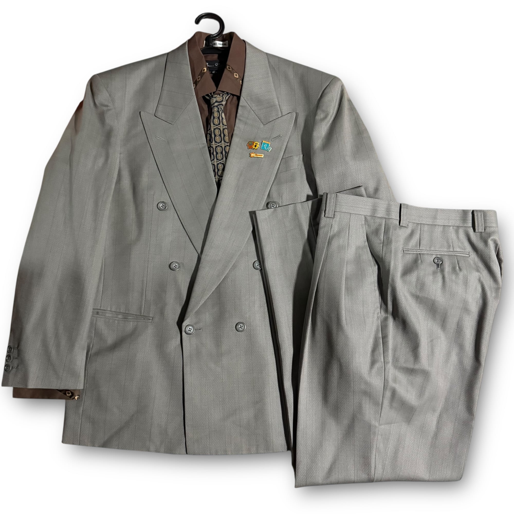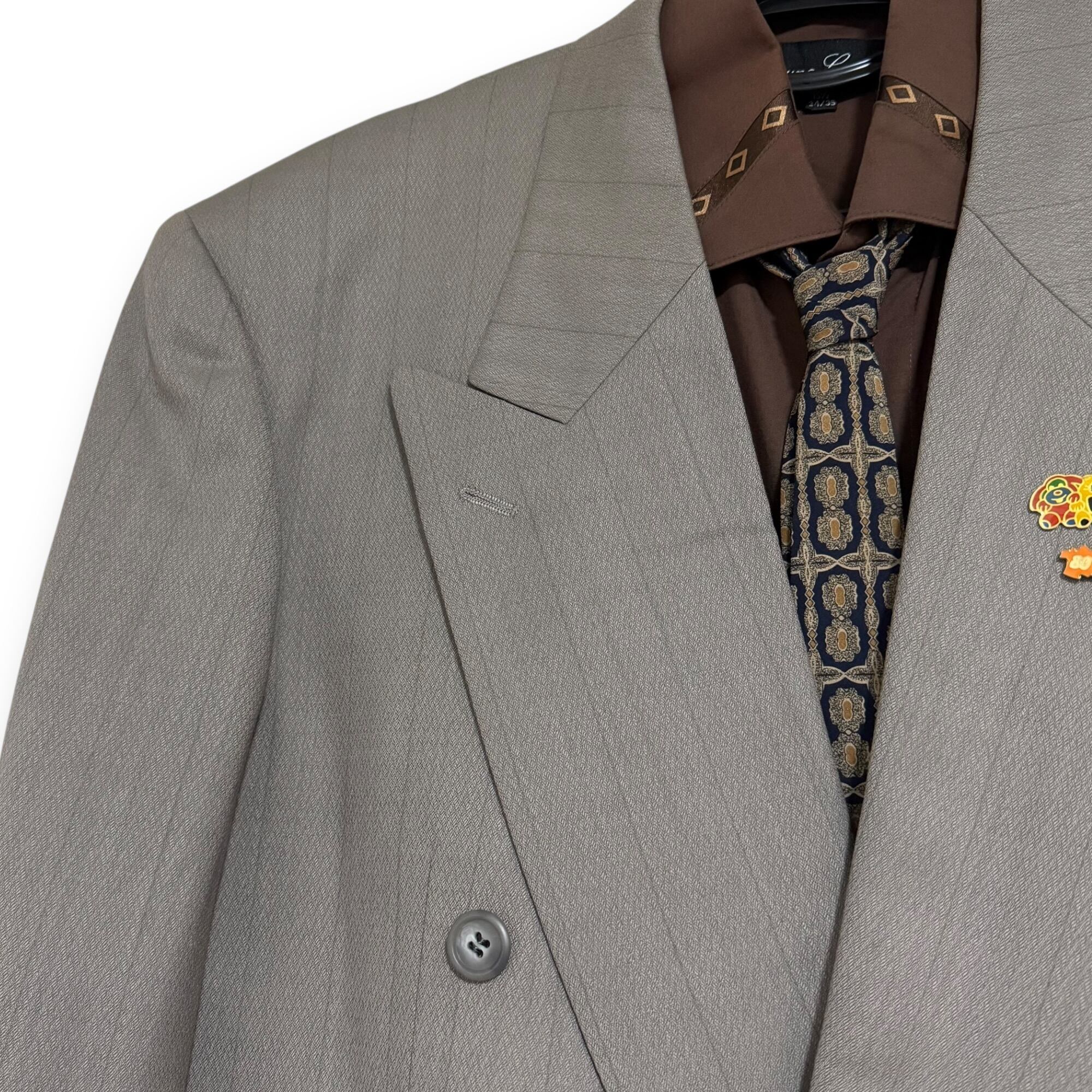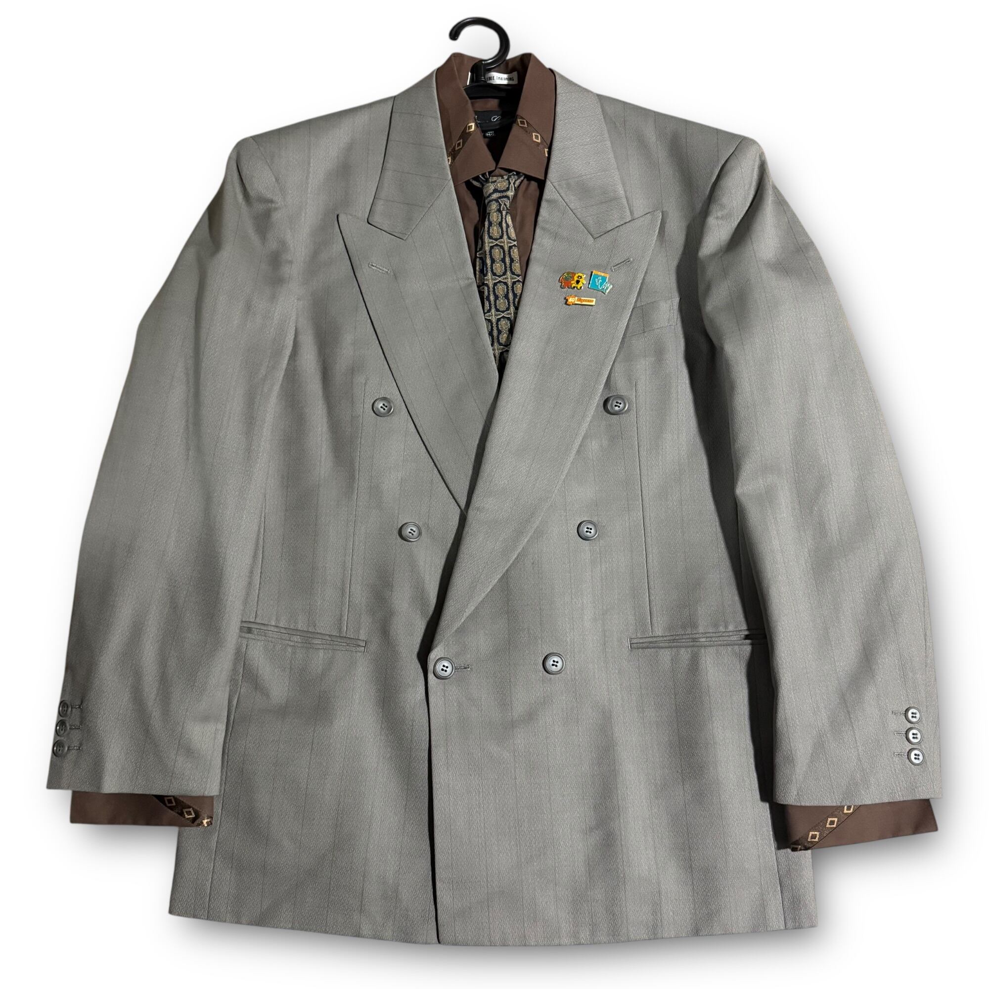grey khaki double set-up & sleeves design shirt & tie & vintage pins / グレーカーキダブルセットアップ&スリーブデザインシャツ&ネクタイ&ビンテージピンズ