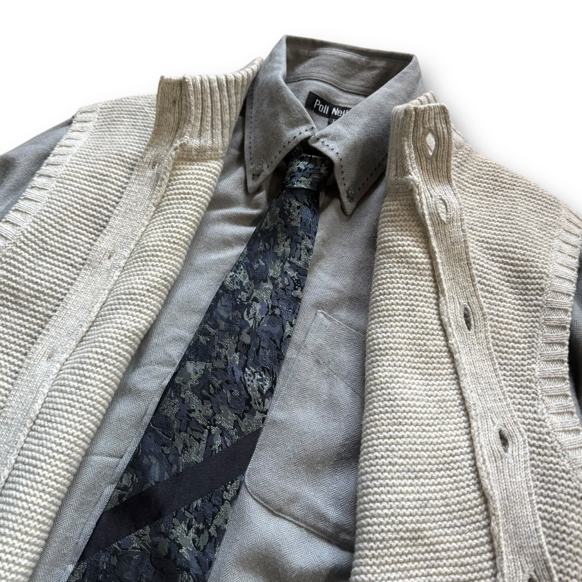 "Eddie Bauer" botton knit vest & herringbone wool shirt & design tie / "エディーバウアー" ボタンニットベスト&ヘリンボーンウールシャツ&デザインネクタイ