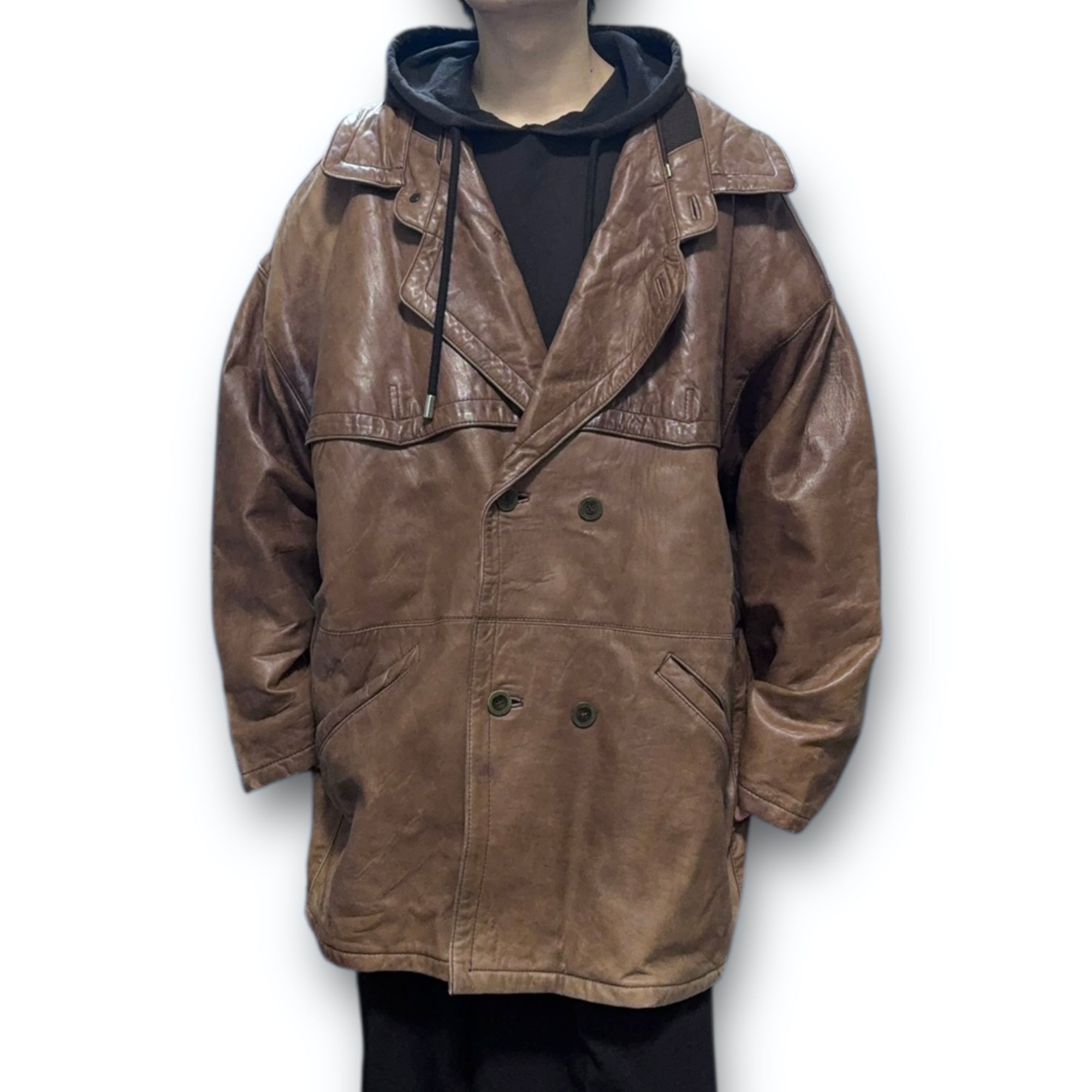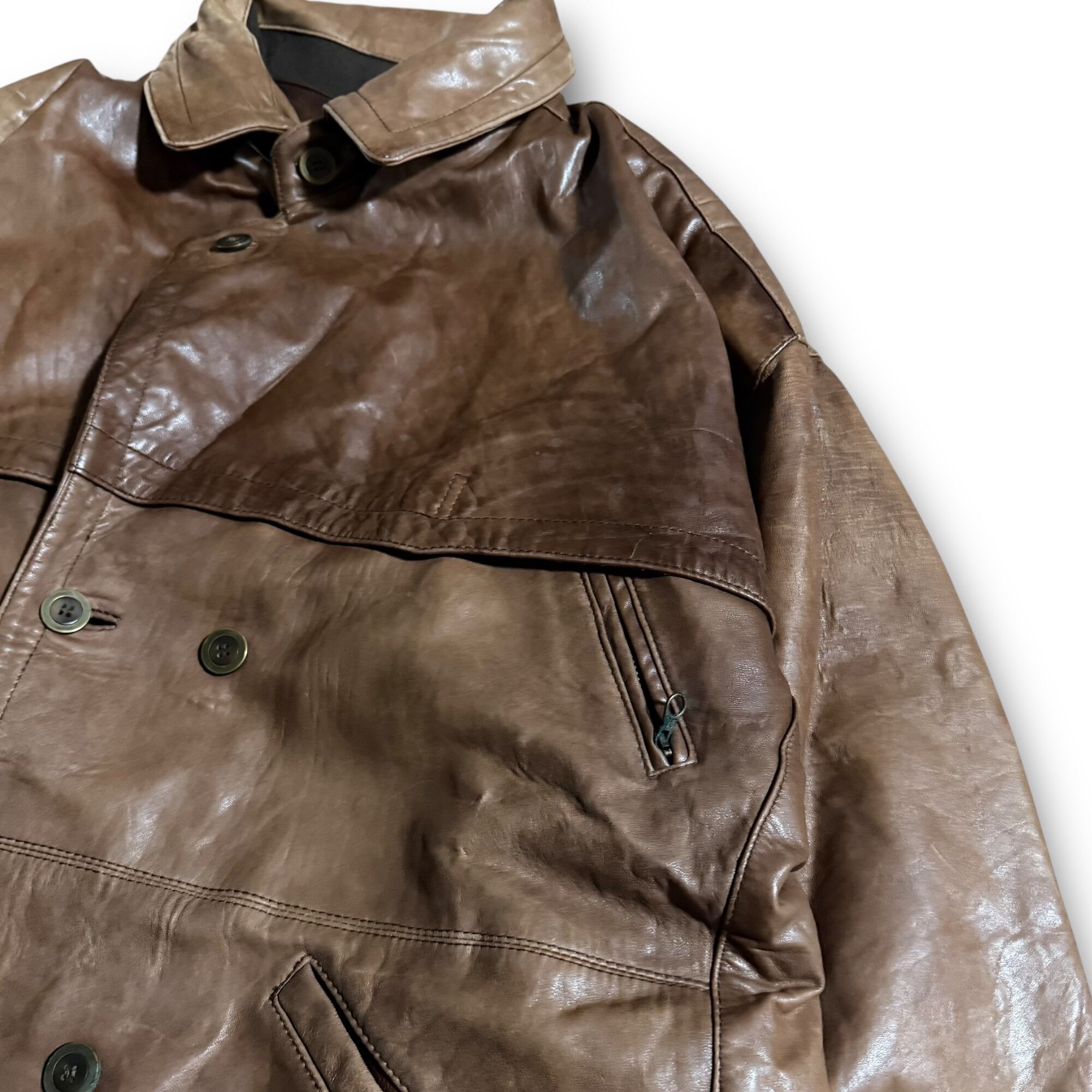 90's double sheep leather coat jacket made in Spain / ダブルラムレザーコートジャケット スペイン製