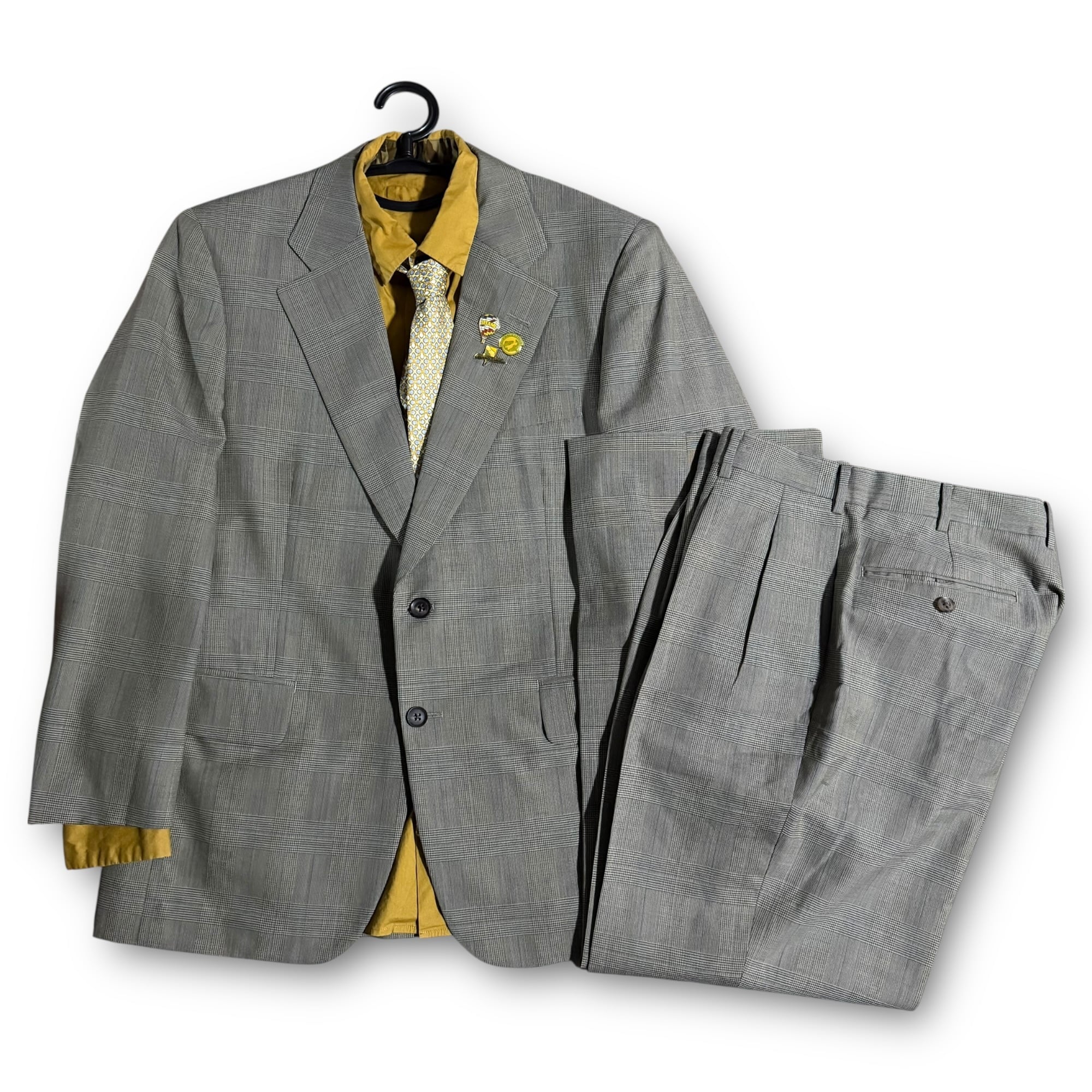 "Paul Stuart" check set-up & yellow shirt & design tie & vintage pins / "ポールスチュアート" チェックセットアップ&イエローシャツ&デザインネクタイ&ビンテージピンズ