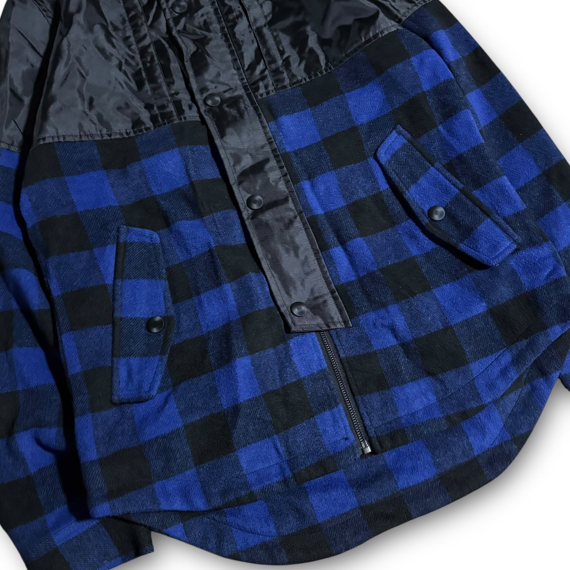 nylon docking design check shirt / ナイロンドッキングデザインチェックシャツ