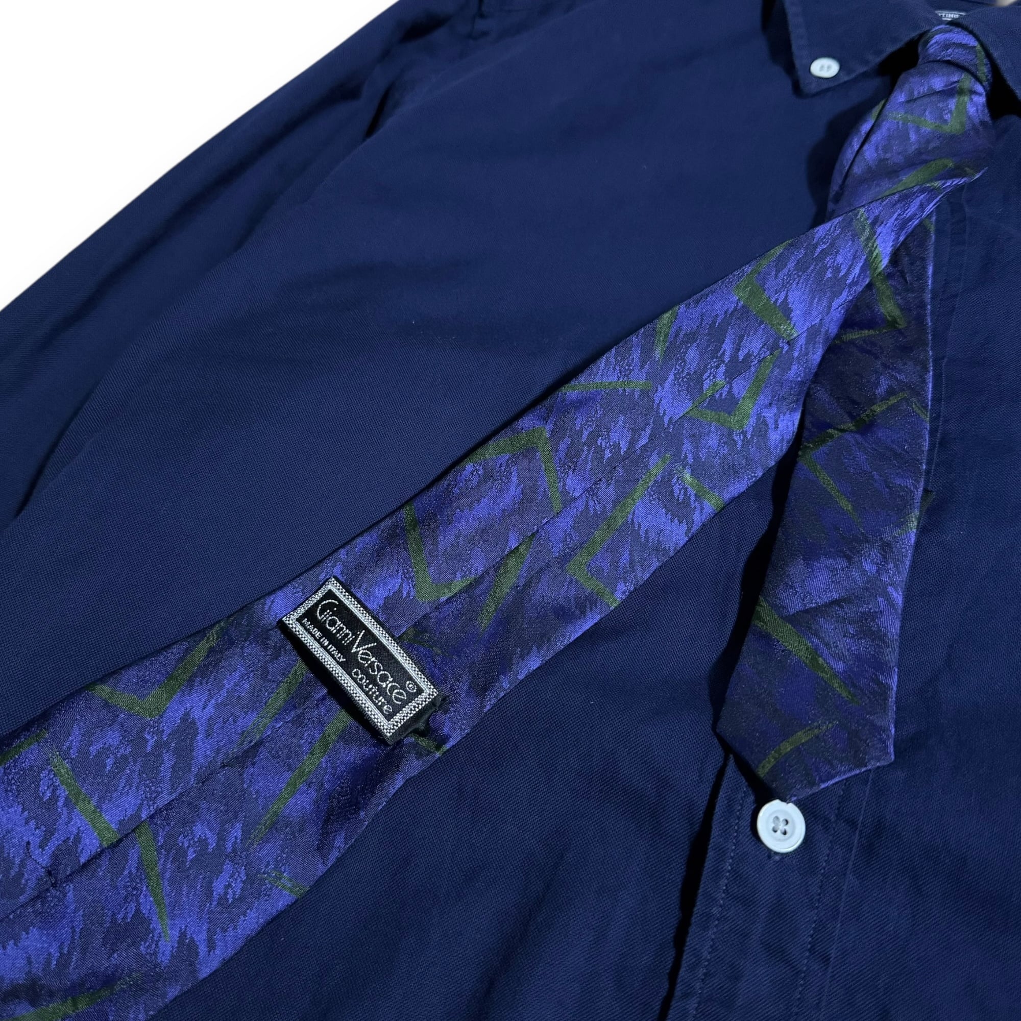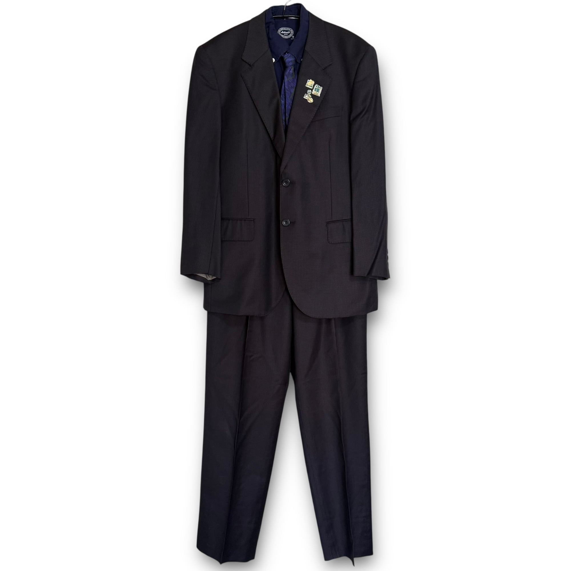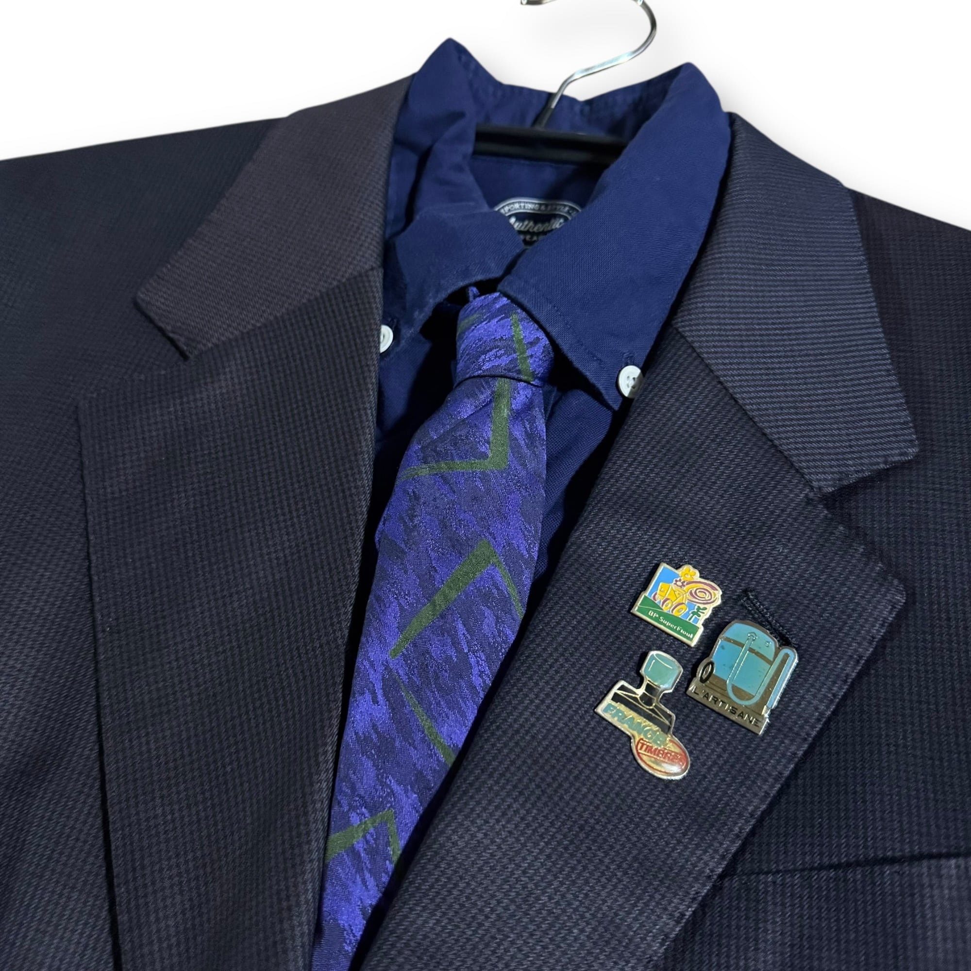navy brown check set-up & navy shirt &"VERSACE" tie & vintage pins / ネイビーブラウンセットアップ&ネイビーシャツ&"ヴェルサーチ"ネクタイ&ビンテージピンズ