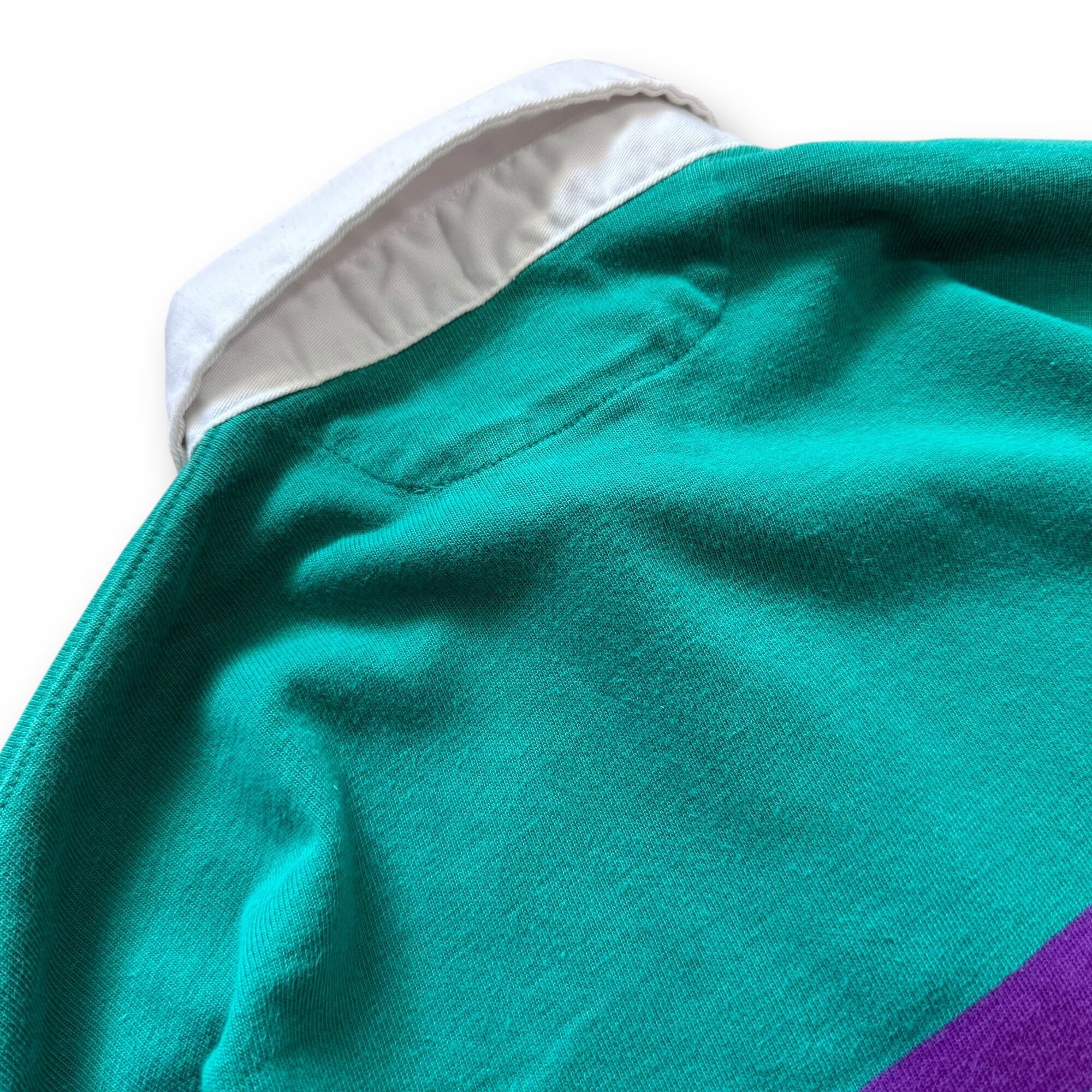 ラガーシャツ特有の襟の切り替えも