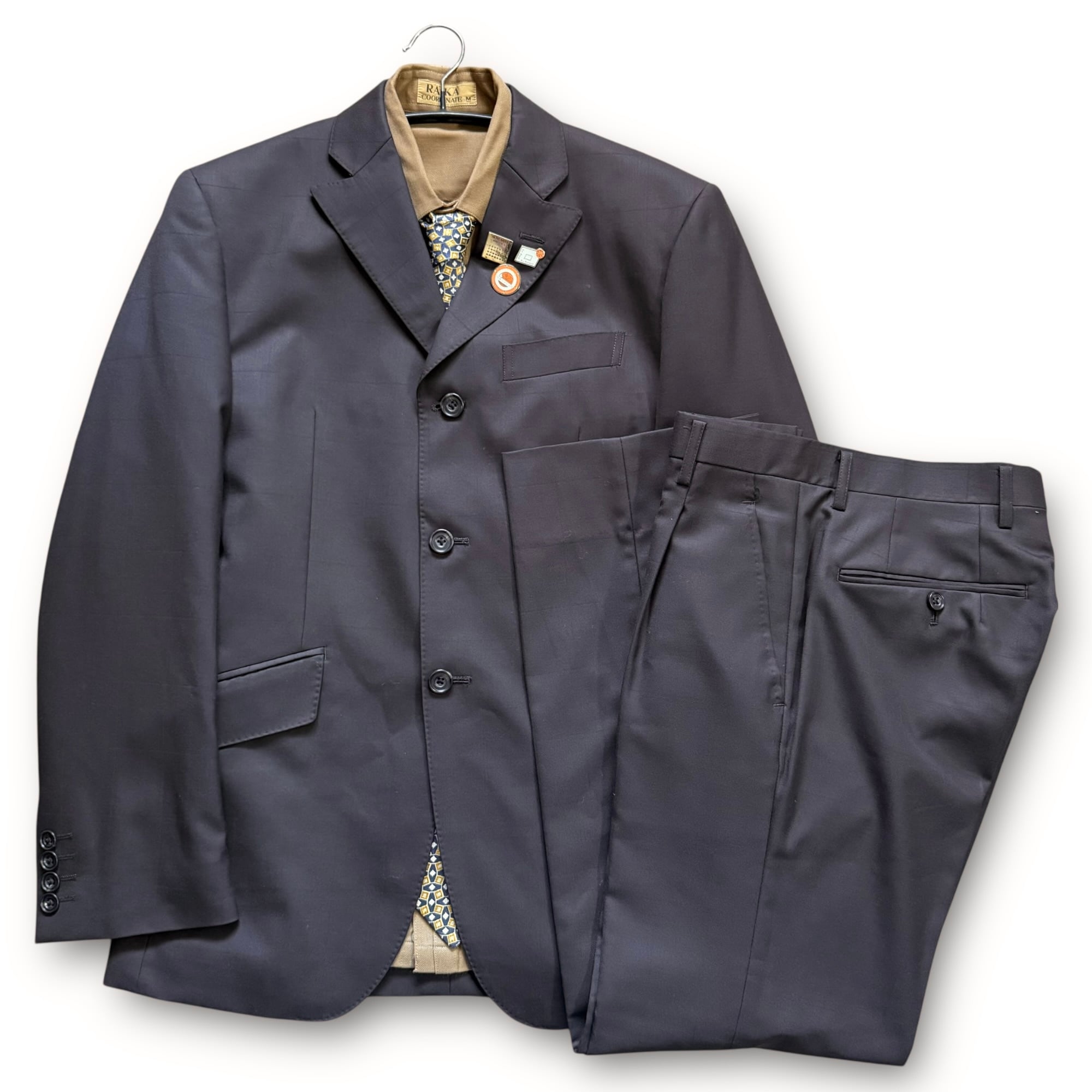 brown shadow check set-up & 90's "RAIKA" wool shirt & "YVES SAINT LAURENT" tie & vintage pins / ブラウンチェックセットアップ&"ライカ" ウールシャツ&"イヴ・サンローラン" ネクタイ&ビンテージピンズ