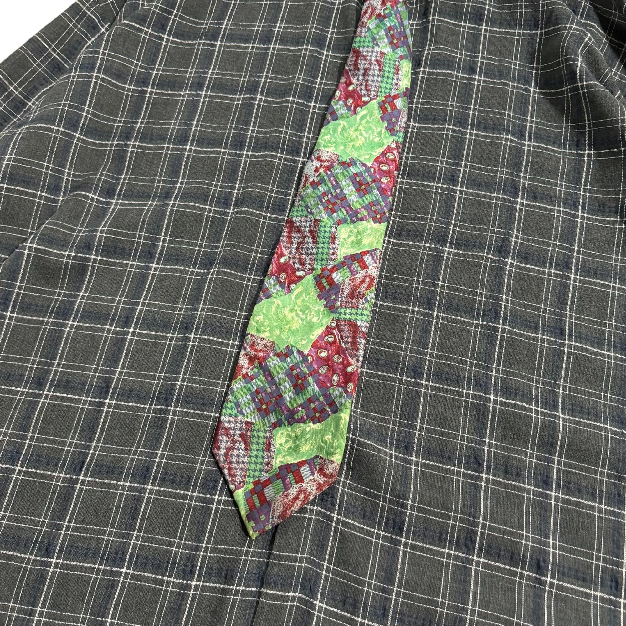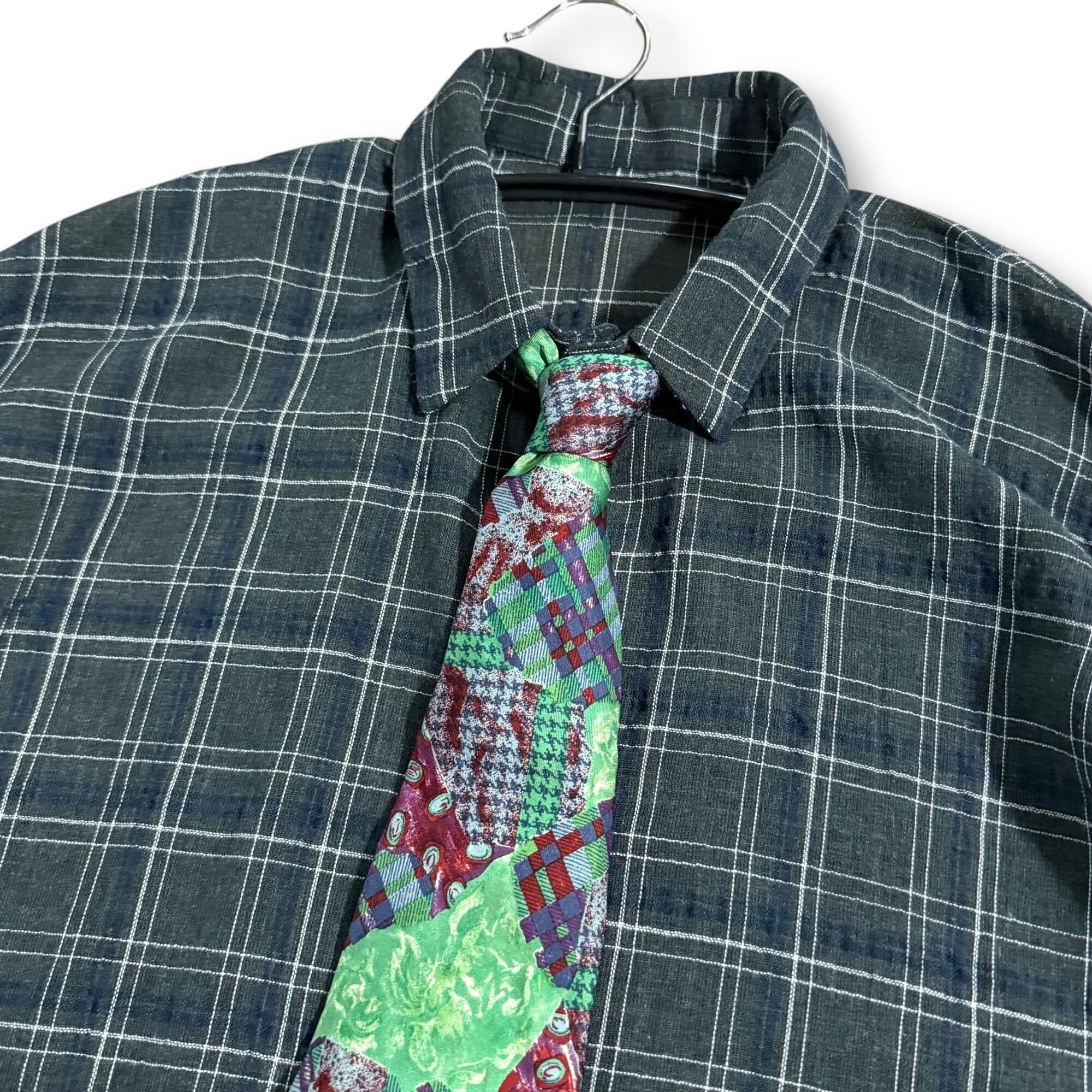 "GILDAN" fish design sweat vest & check light shirt & design tie / "ギルダン" フィッシュデザインスウェットベスト&チェックライトシャツ&デザインネクタイ