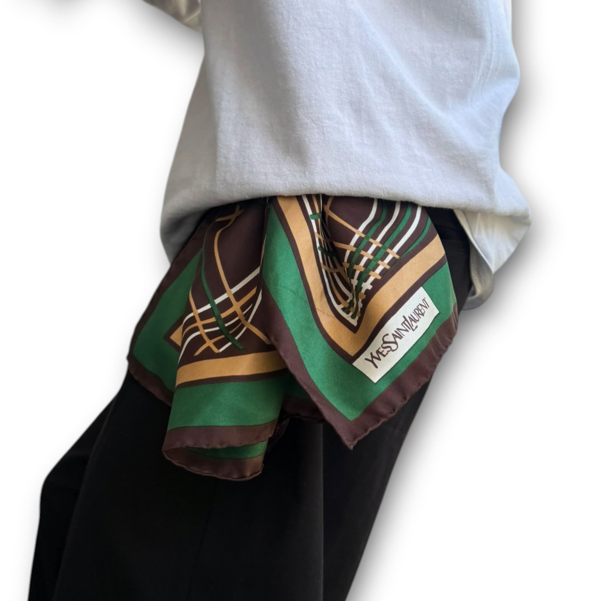90's "YEVS SAINT LAURENT" design silk scarf made in Italy / "イヴ・サンローラン" デザインシルクスカーフ イタリア製