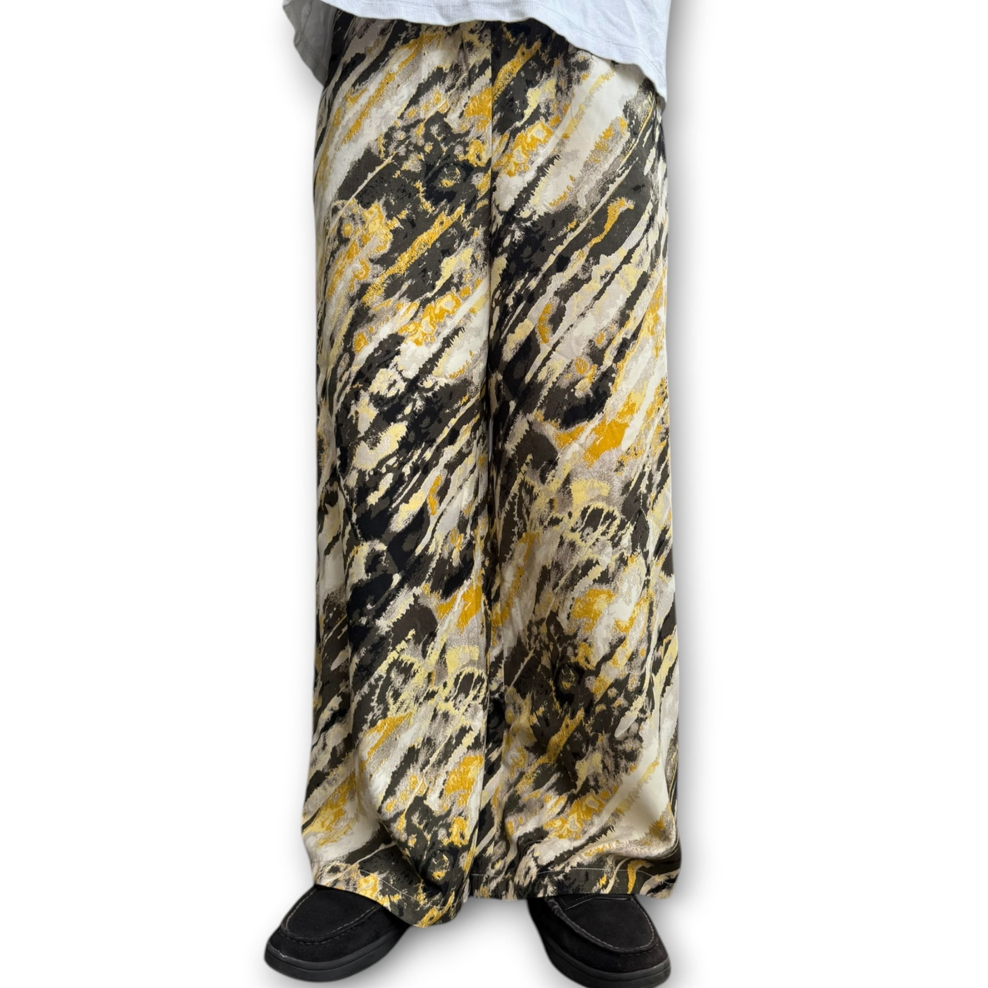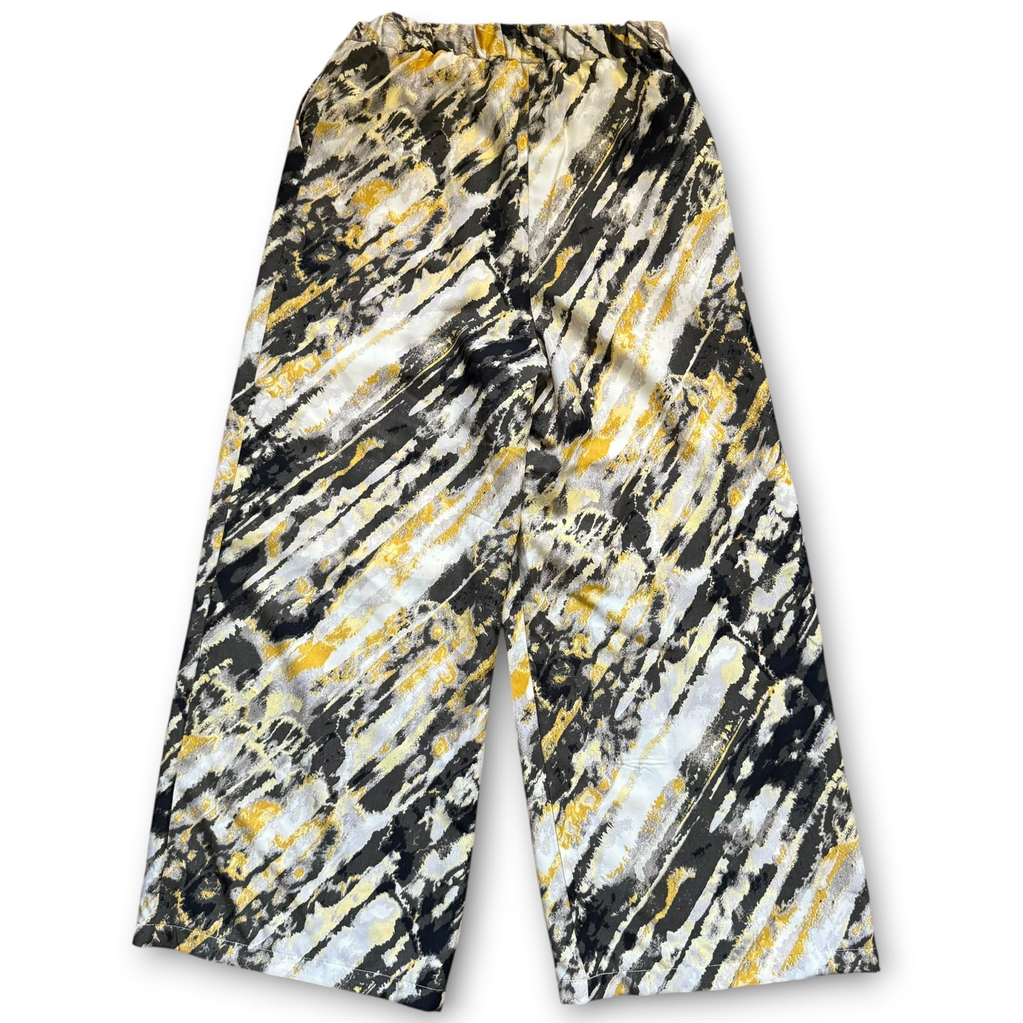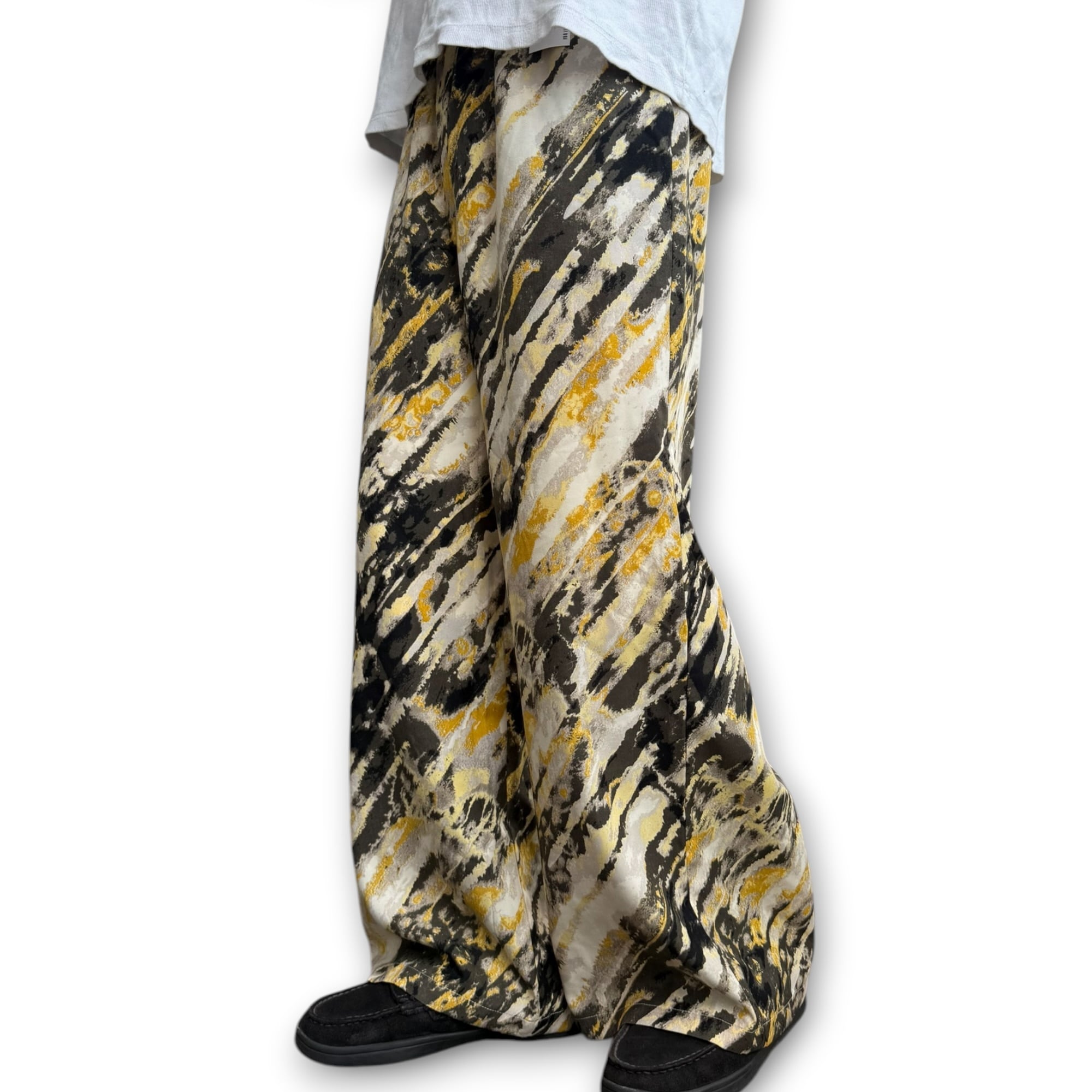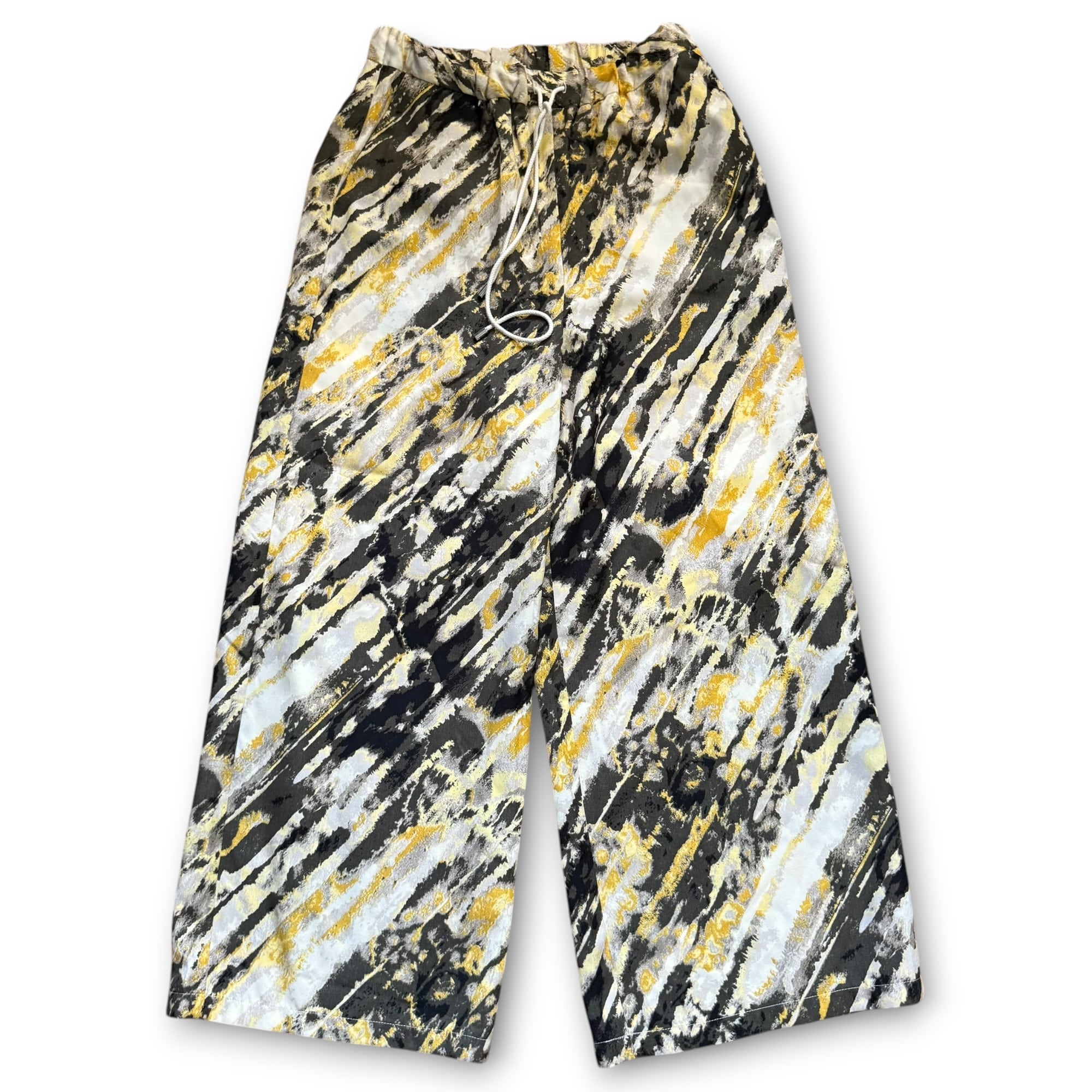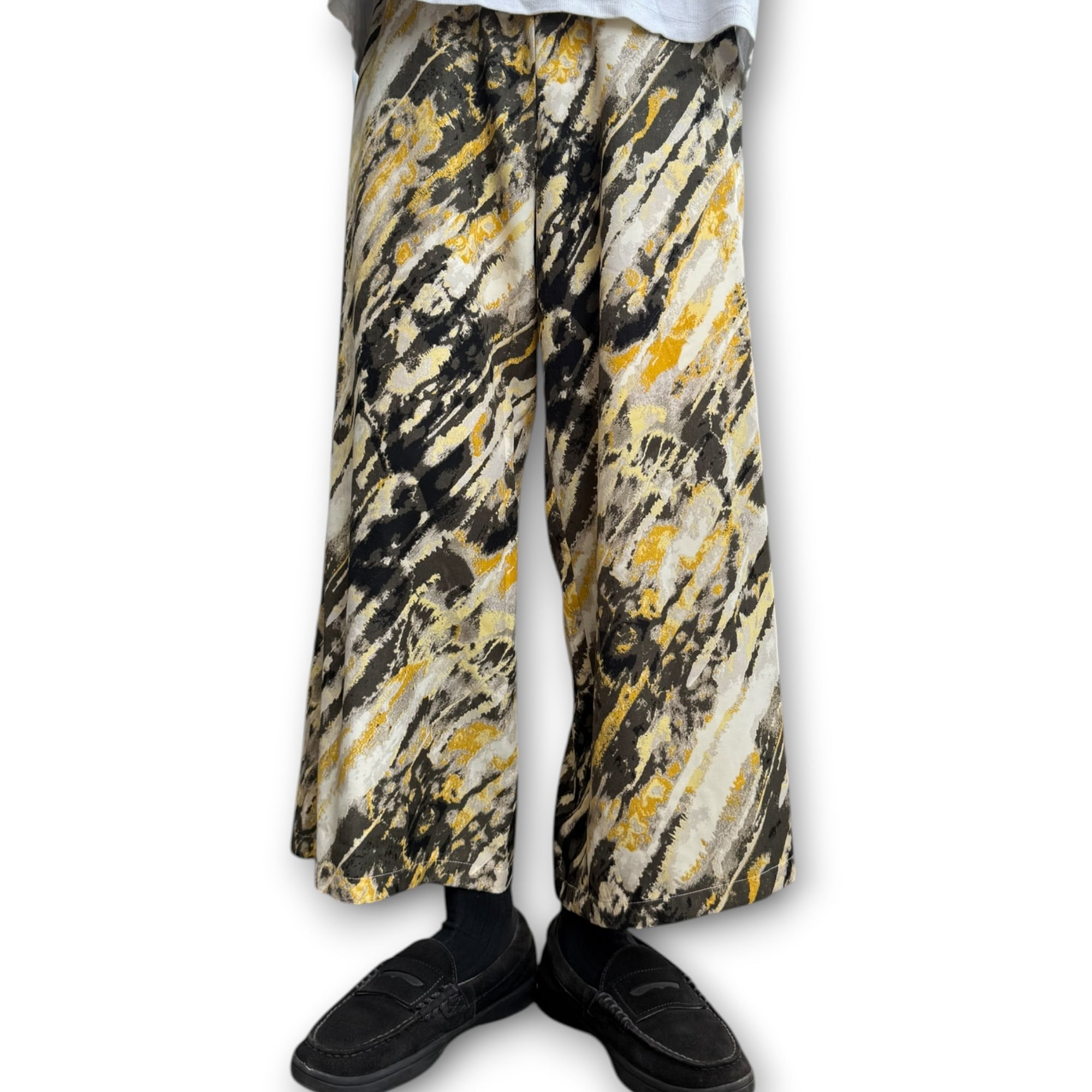 イエローとブラックベースのアートな雰囲気漂うイージーパンツ。