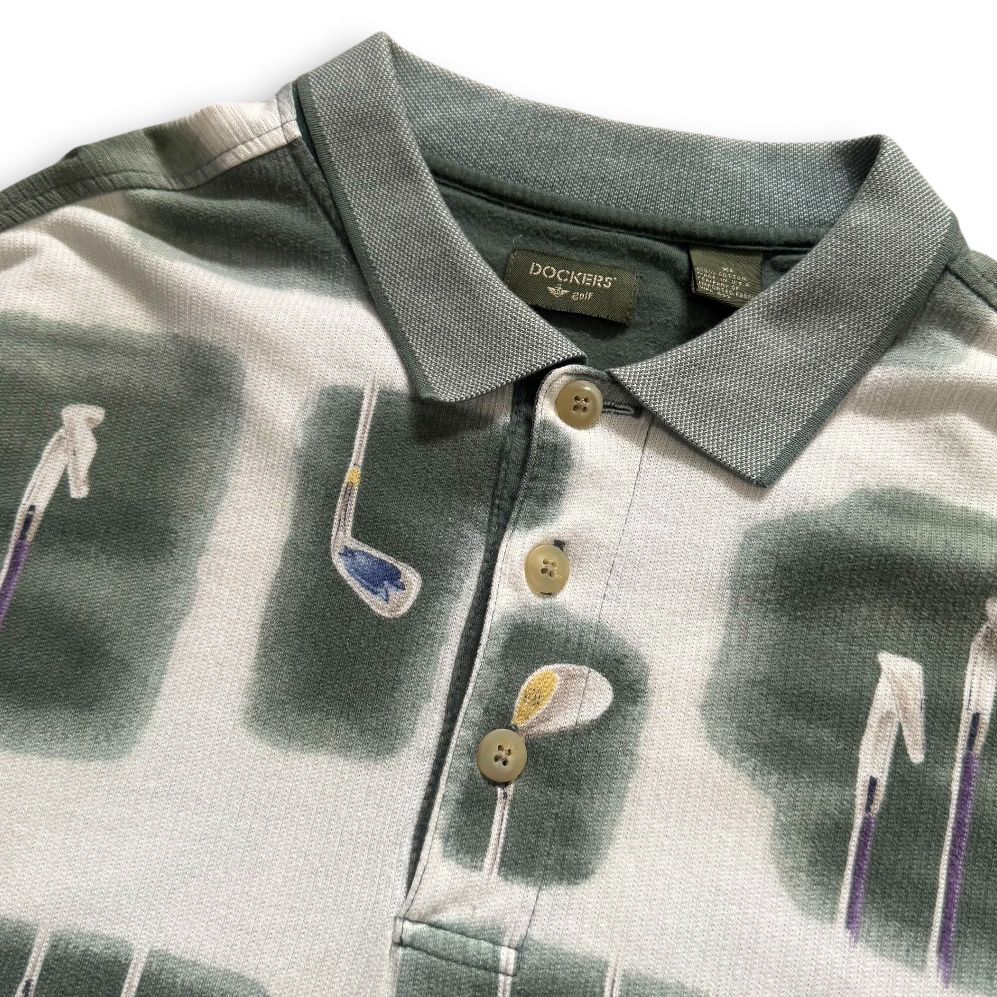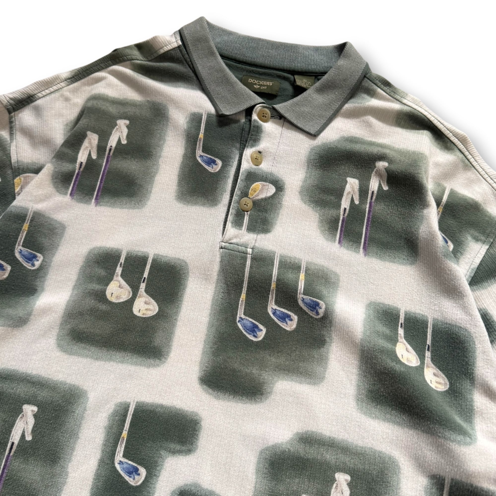 90's "DOCKERS" golf design pattern polo shirt made in USA / "ドッカーズ" ゴルフデザインパターンポロシャツ アメリカ製