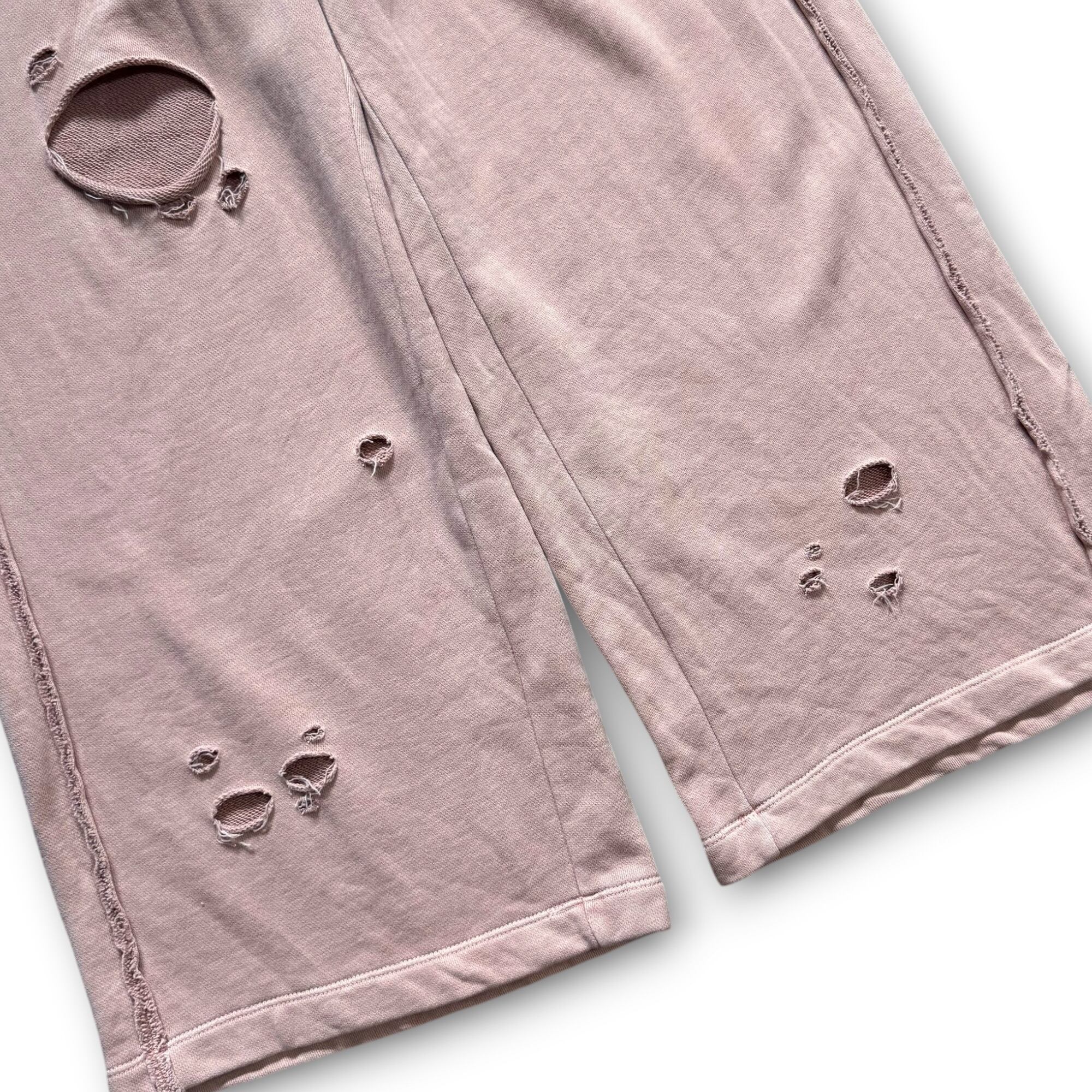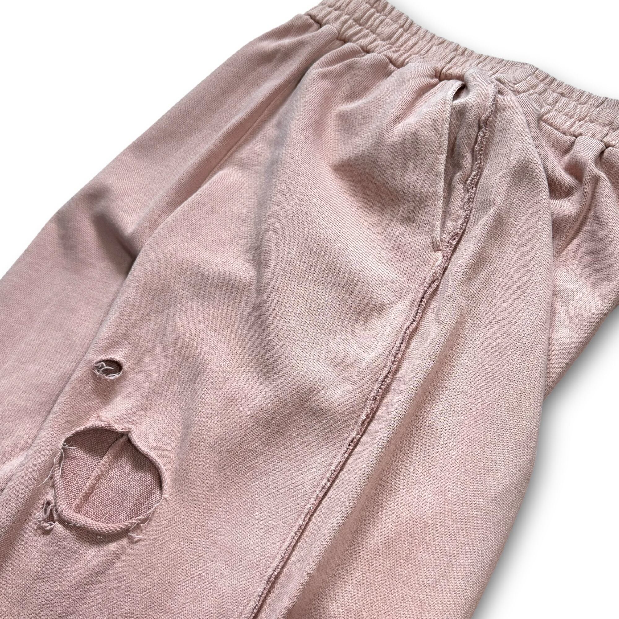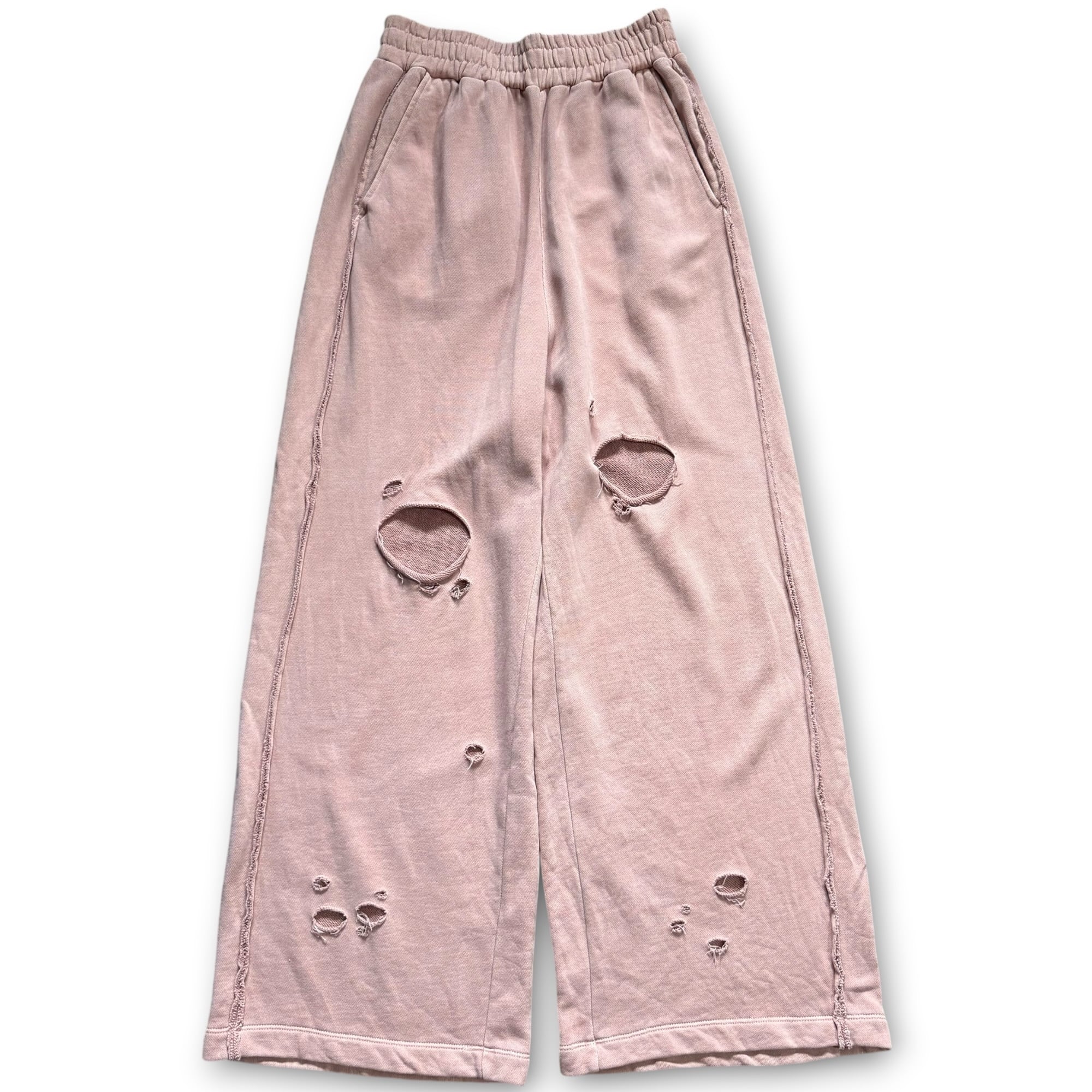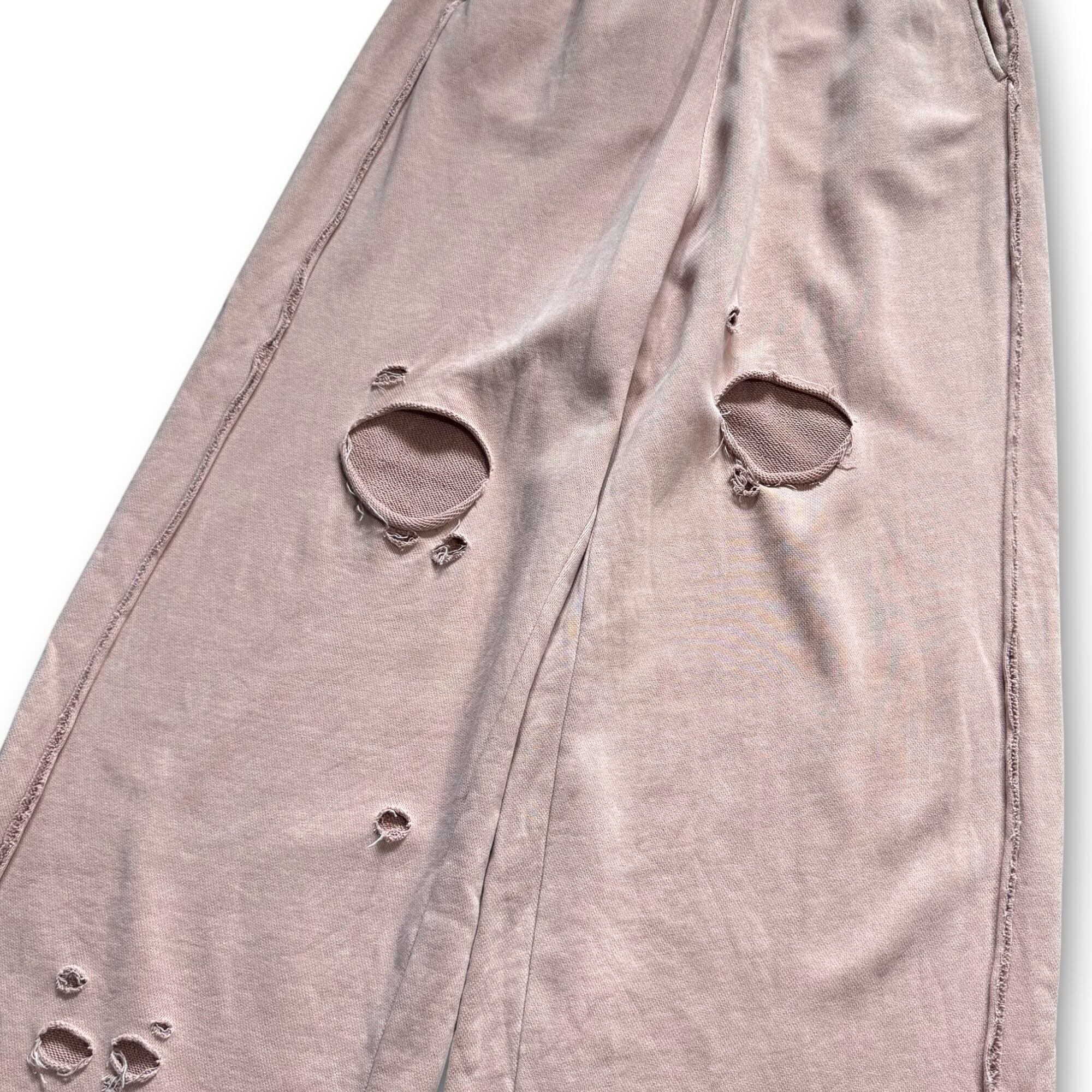 wash pink damaged wide baggy sweat pants / ウォッシュピンクダメージワイドバギースウェットパンツ